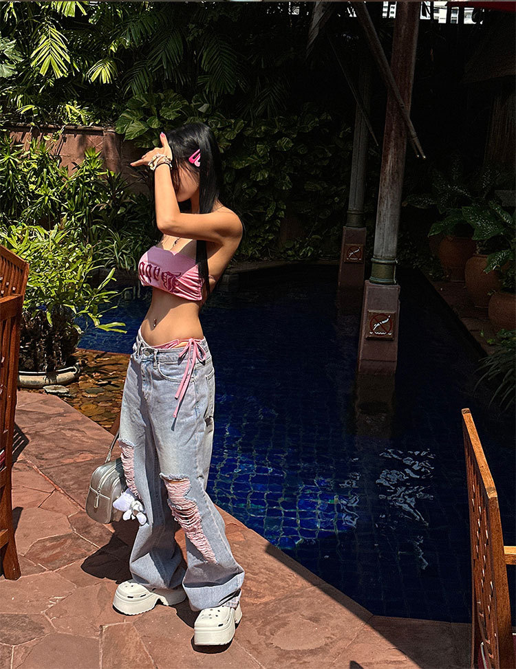 섹시한 비키니 수영복 핑크 온천 삼각형 분할 낮은 허리 노출 배꼽 도매 수영복의 유럽과 미국의 교차 공급스토어 가기
