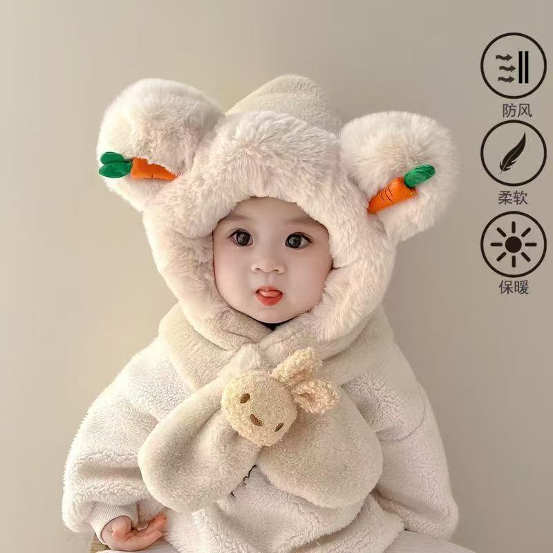 아기 모자 겨울 소년과 어린이 스카프 한 조각 무 곰 튀김 모자 어린이 기모 두꺼운 따뜻한 귀 보호 모자