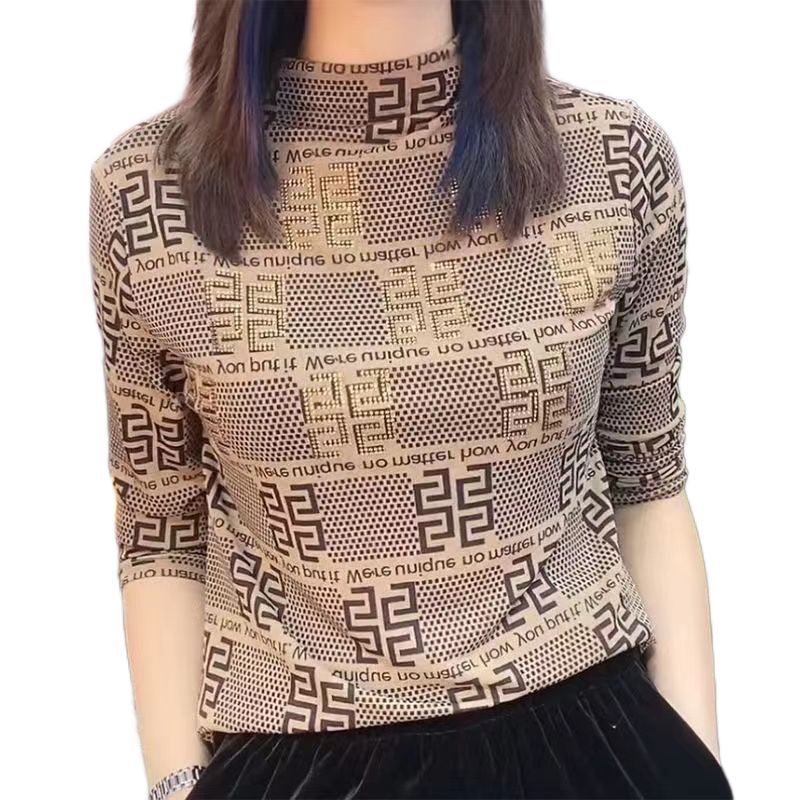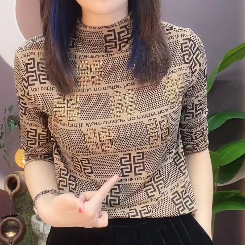 가벼운 고급 고급 외국식 베이스 셔츠 여성의 가을 및 겨울 어머니 우아한 올 매치 긴팔 티셔츠 탑 하프 하이 칼라 작은 셔츠스토어 가기