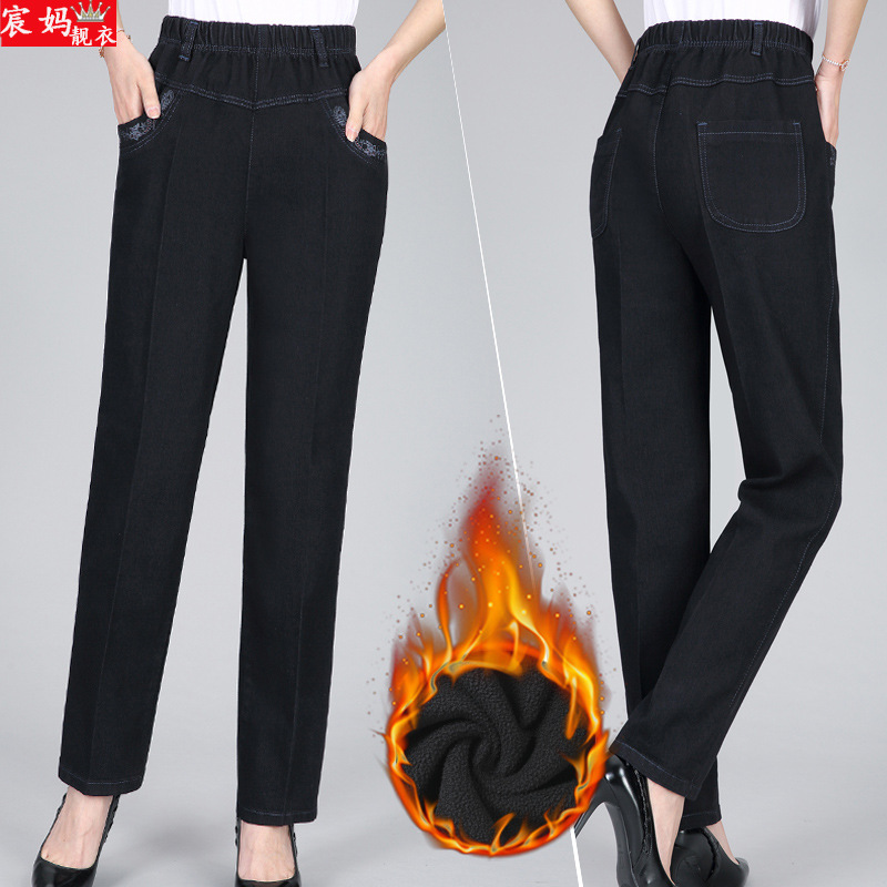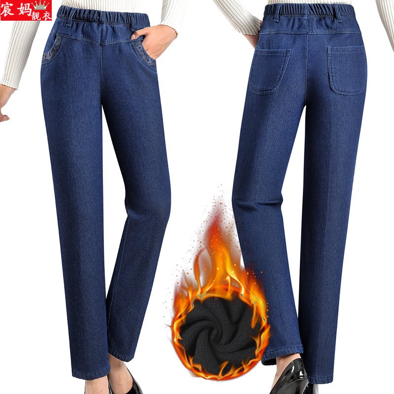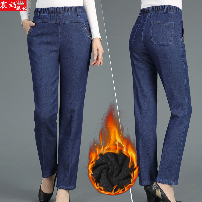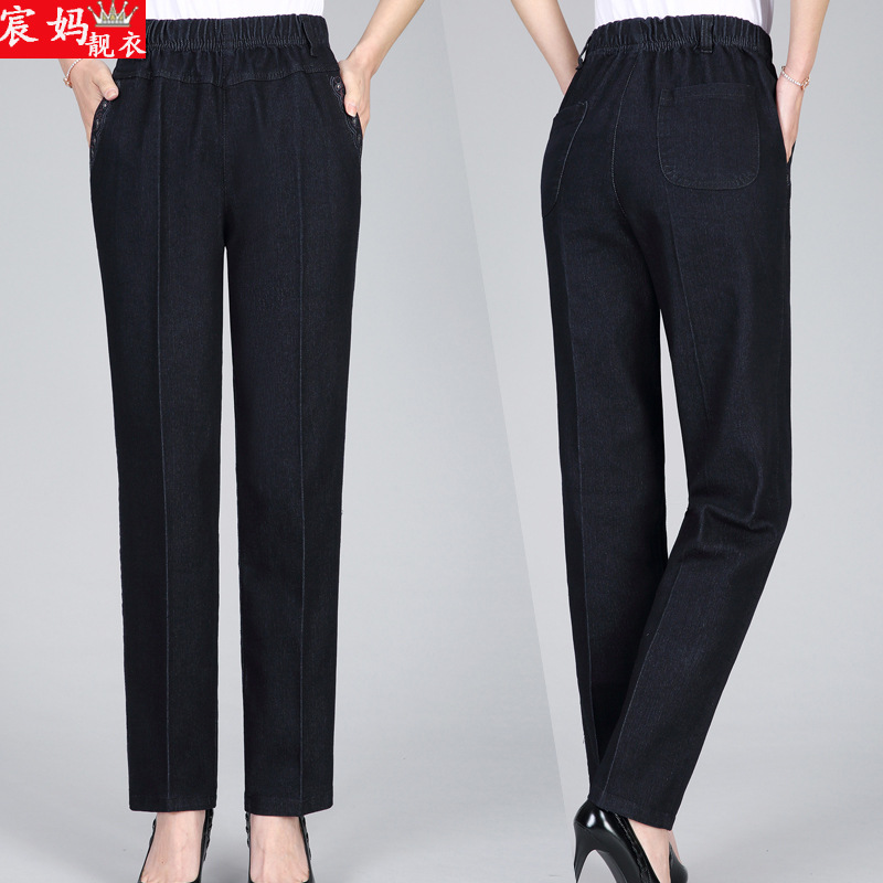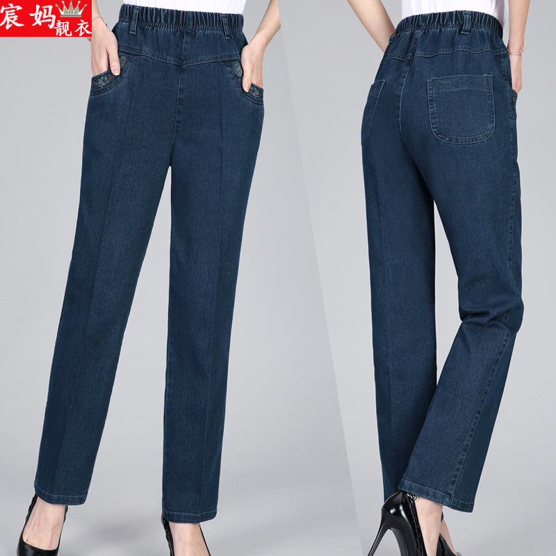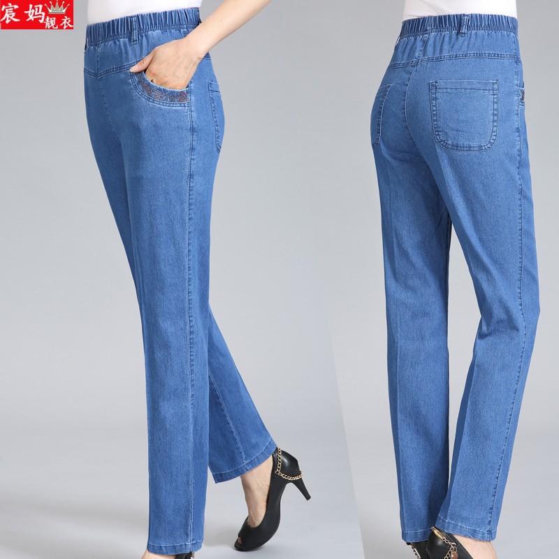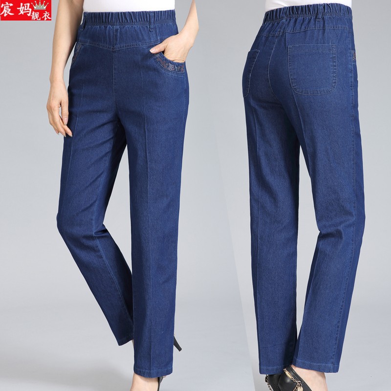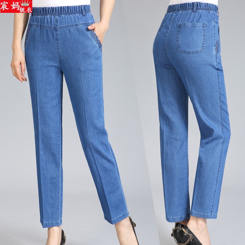 어머니의 봄과 여름 얇은 청바지 중년 및 노인 여성의 탄성 높은 허리 탄성 느슨한 바지 새 봄과 가을 옷스토어 가기