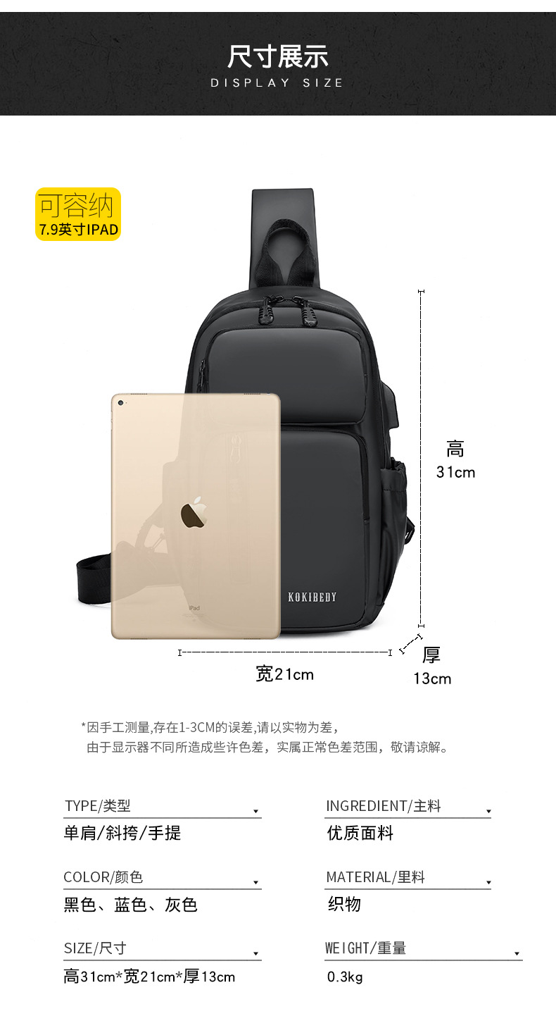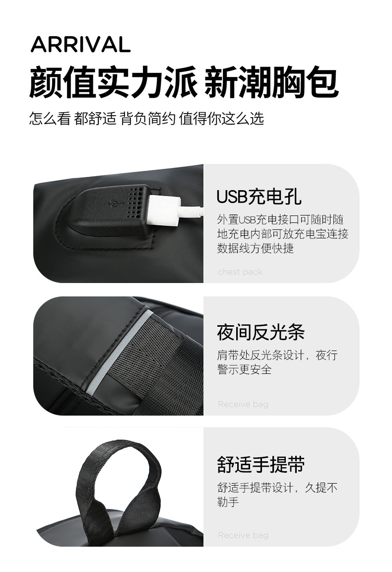 남성 크로스 바디 백 다기능 가슴 가방 방수 어깨 배낭 대용량 충전 크로스 바디 소형 가방 메신저 백