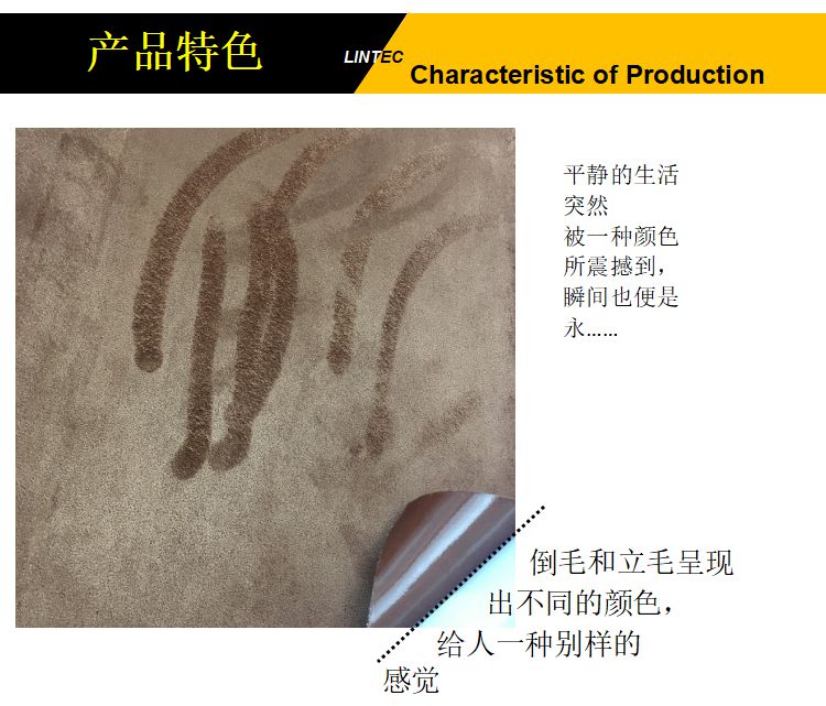 四面弹麂皮绒:任意方向可以拉伸,粘贴时不用考虑绒布的拉伸方向即可使用。表面绒毛细腻,且正毛和倒毛会呈现不同颜色。