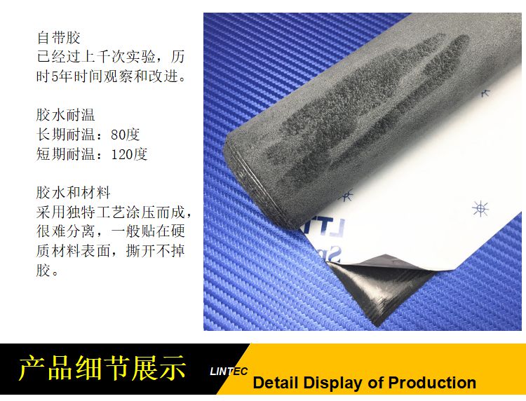 材料背面胶水:采用耐高温胶(长期可耐80度,短期130度),同时可反复粘贴,粘贴硬质物体表面,撕下后无残留胶。