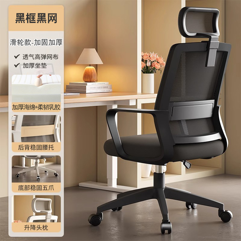• [업그레이드된 두꺼운 머리받침 모델] 블랙 프레임 블랙 메쉬⭐두꺼운 스펀지 쿠션