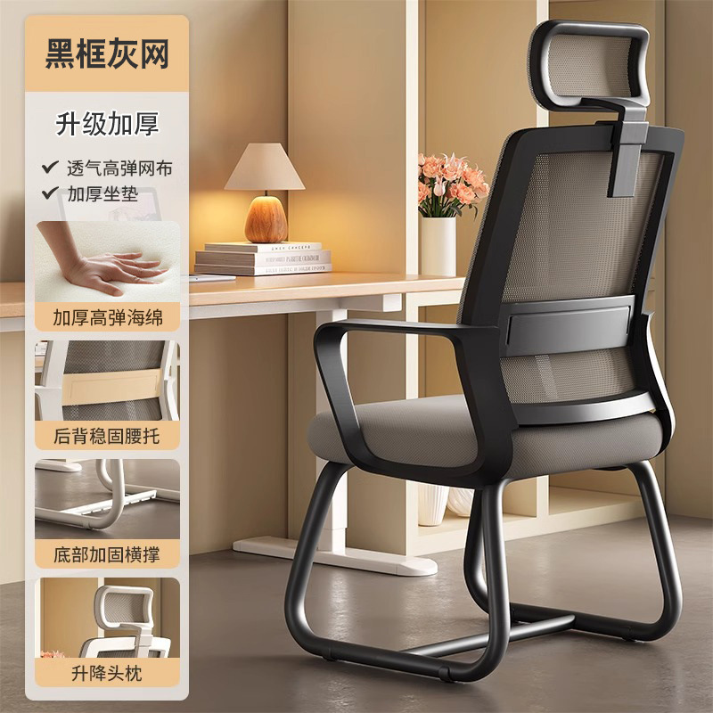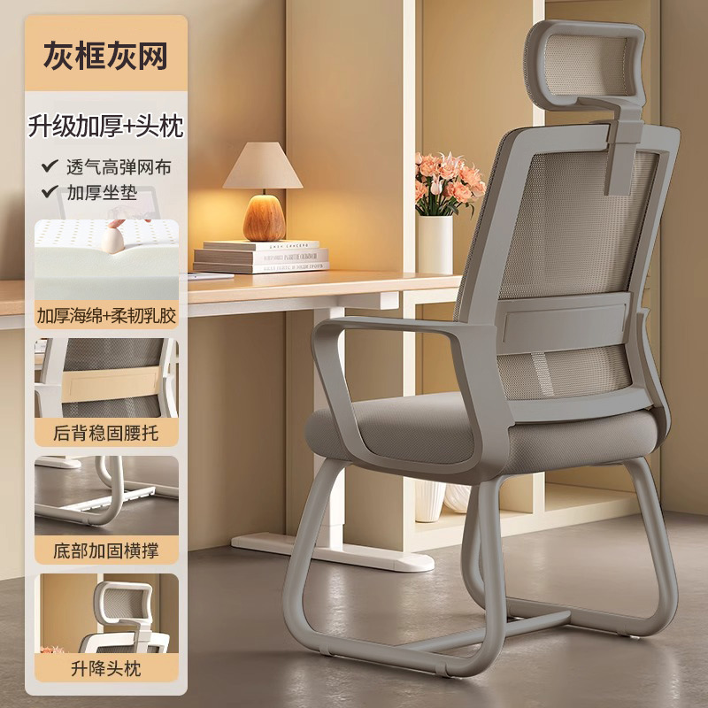• [업그레이드된 두꺼운 머리받침 모델] 그레이 프레임 그레이 메쉬⭐두꺼운 스펀지 쿠션