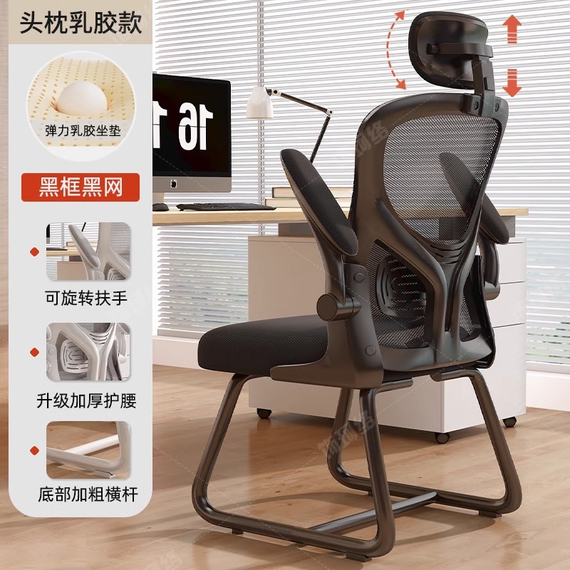 • [고급 두꺼워진 허리 보호 라텍스 머리 받침 모델] 블랙 프레임 블랙 메쉬⭐두꺼운 스펀지 + 라텍스 쿠션 + 리프팅 헤드레스트