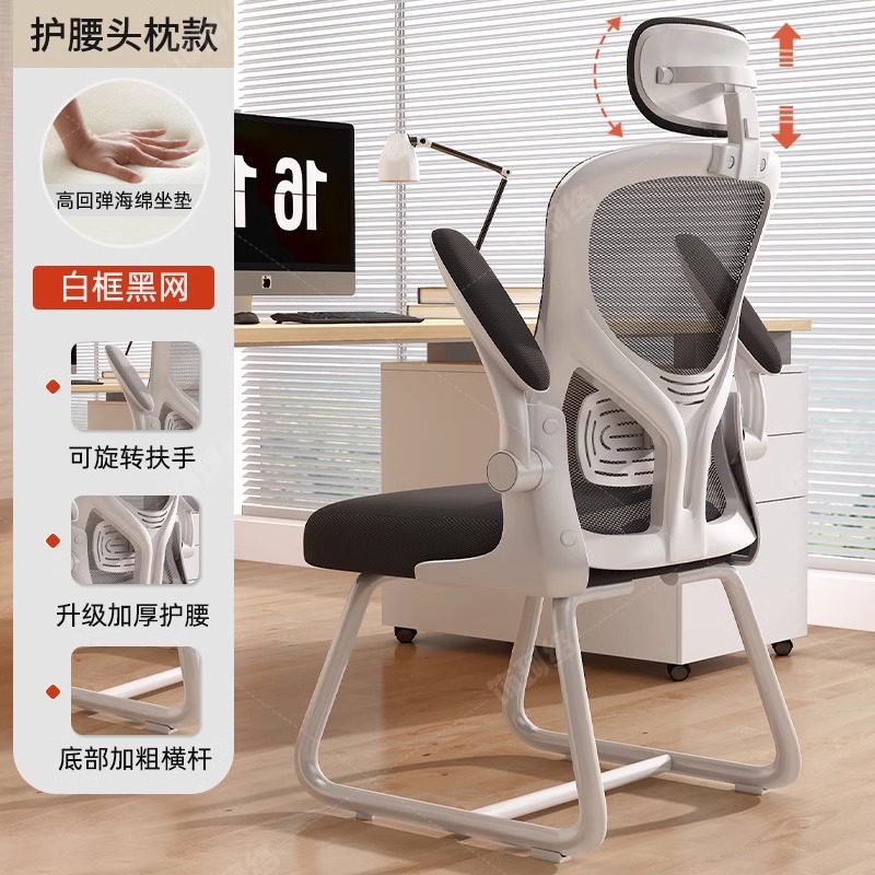 • [업그레이드된 두꺼운 머리받침 모델] 화이트 프레임과 블랙 메쉬⭐두꺼운 스펀지 쿠션