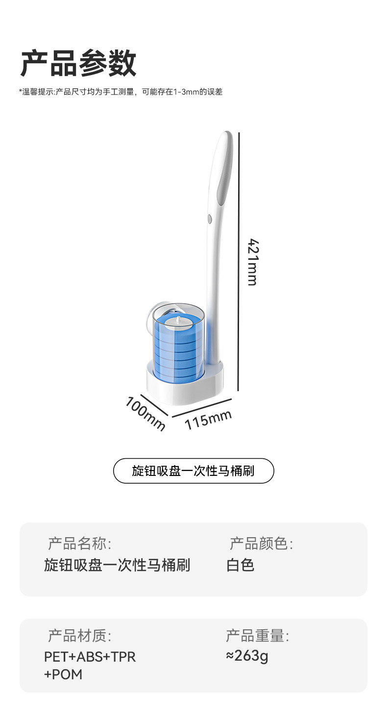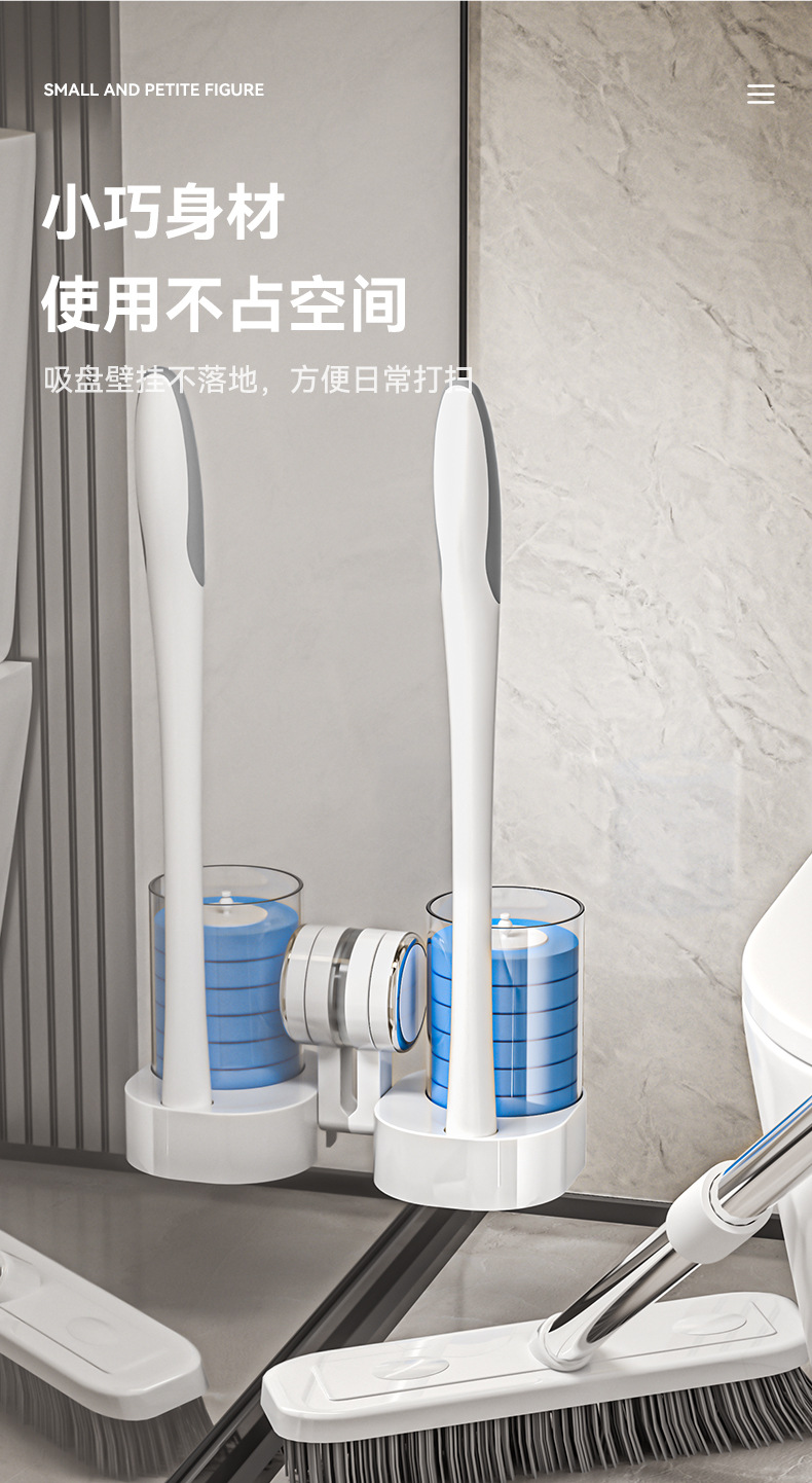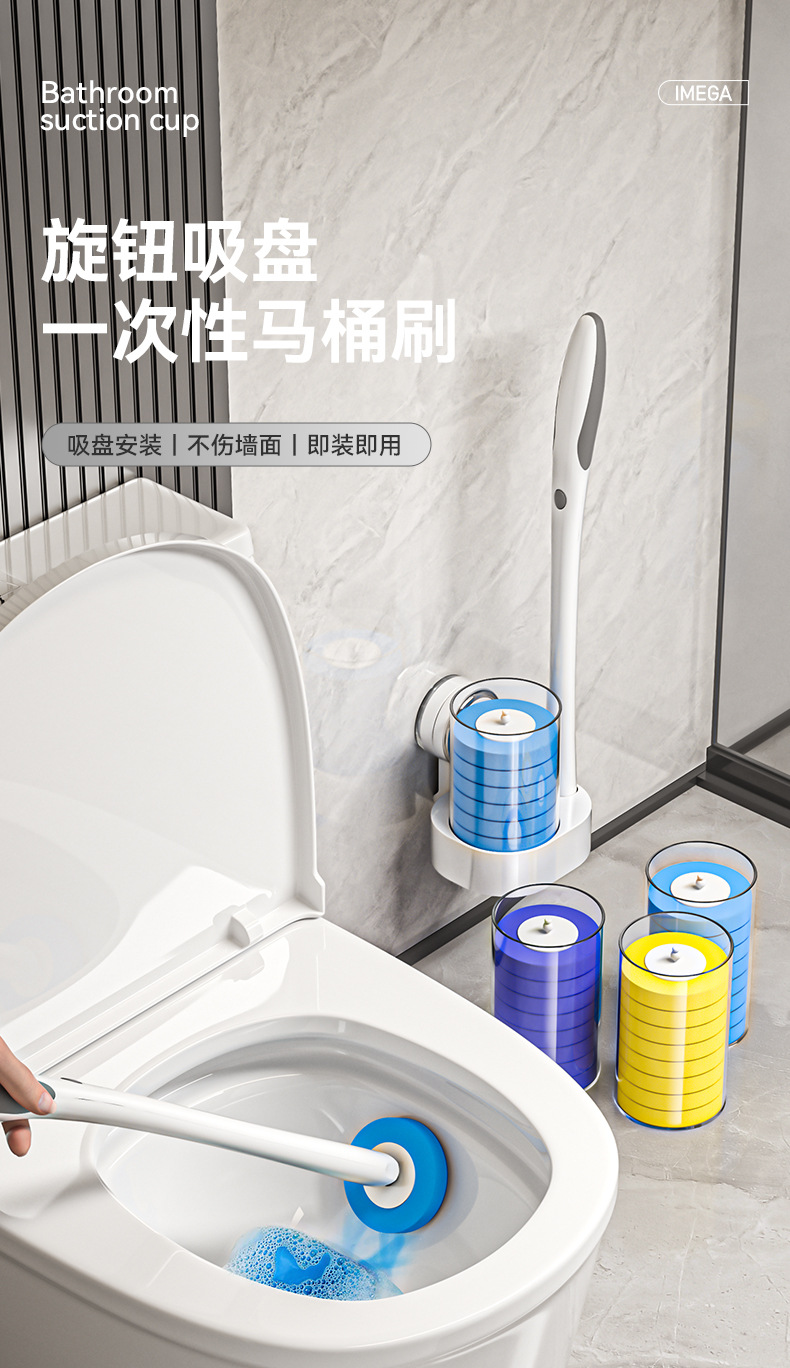사각지대가 없는 새로운 벽걸이형 흡착컵 변기솔, 회전식 가정용 욕실 일회용 플라스틱 청소솔