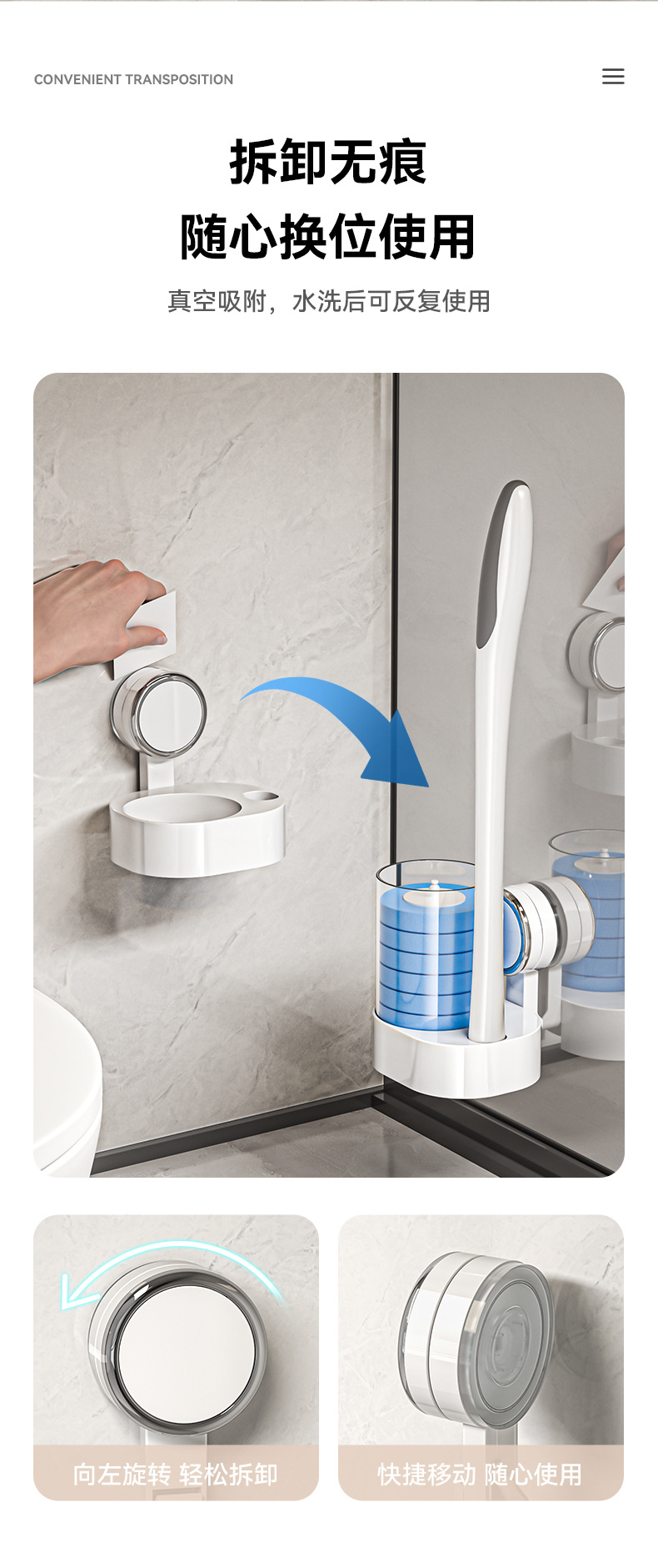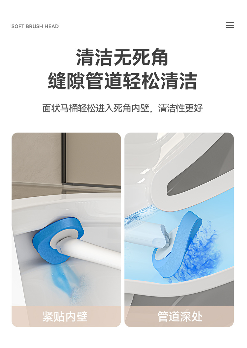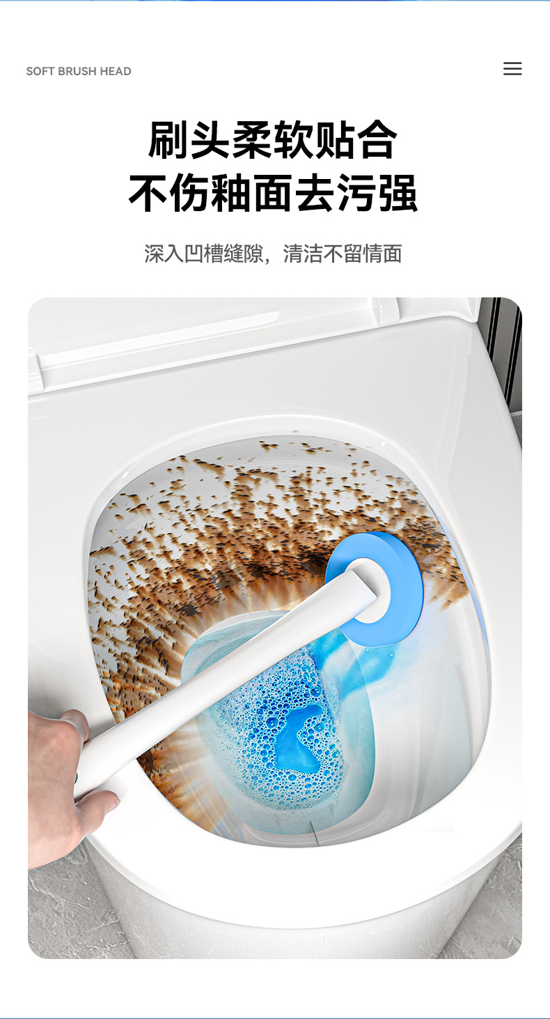 사각지대가 없는 새로운 벽걸이형 흡착컵 변기솔, 회전식 가정용 욕실 일회용 플라스틱 청소솔
