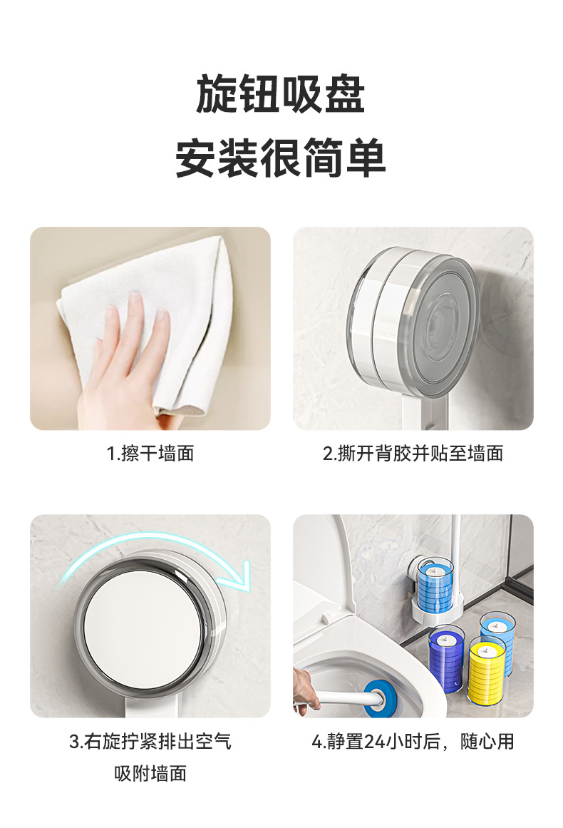 사각지대가 없는 새로운 벽걸이형 흡착컵 변기솔, 회전식 가정용 욕실 일회용 플라스틱 청소솔스토어 가기
