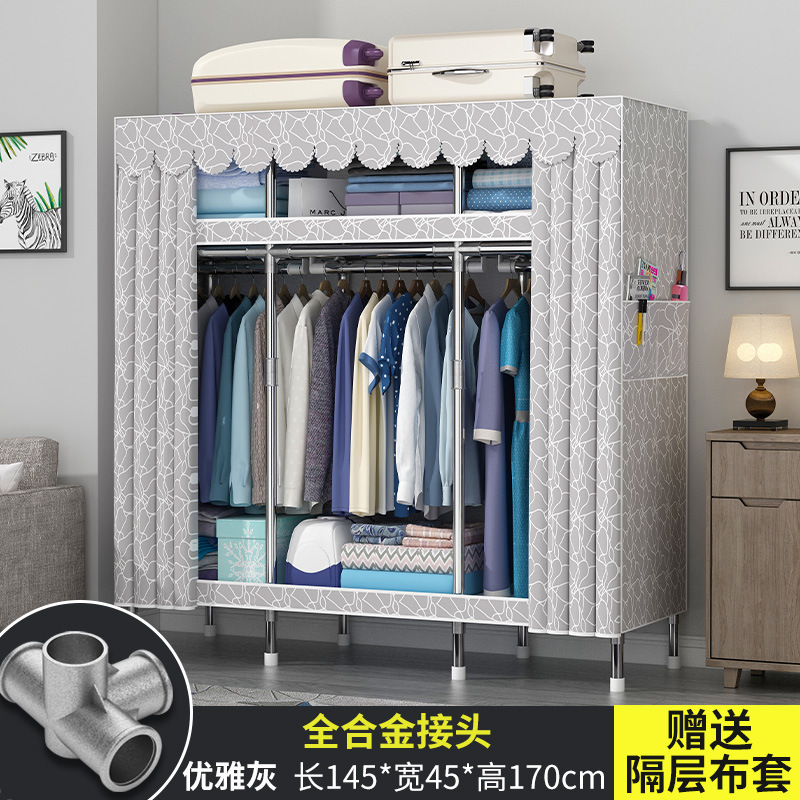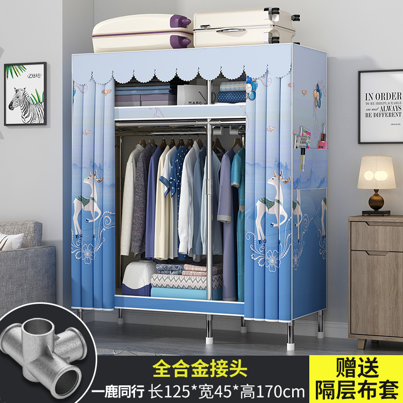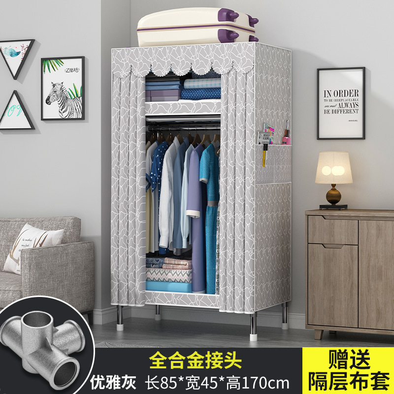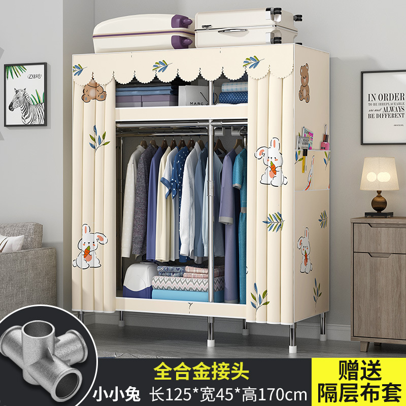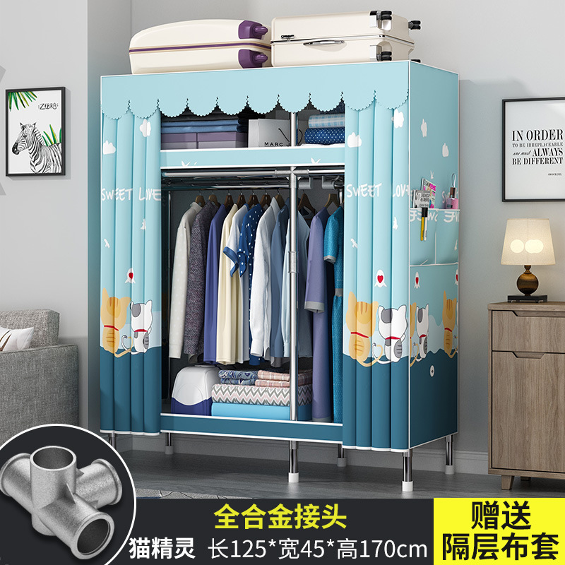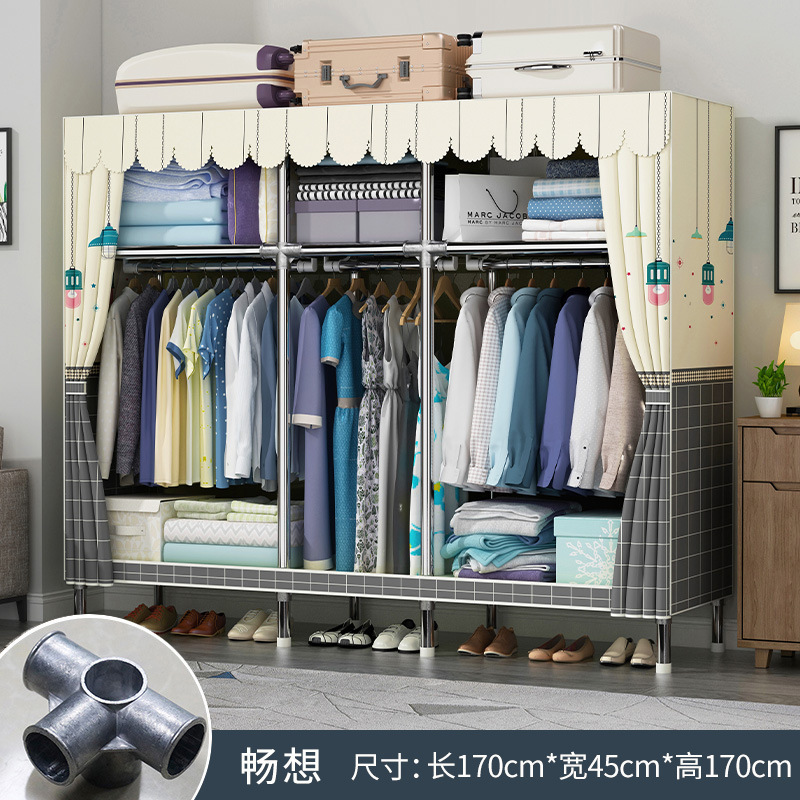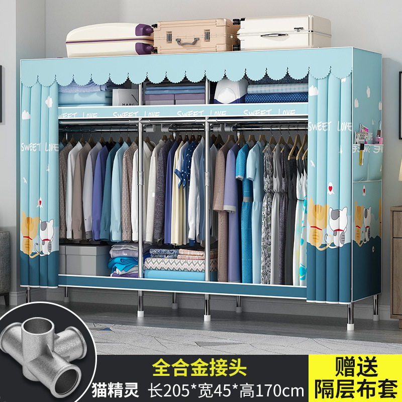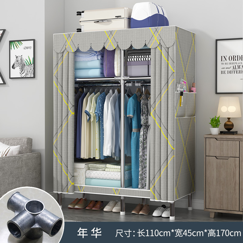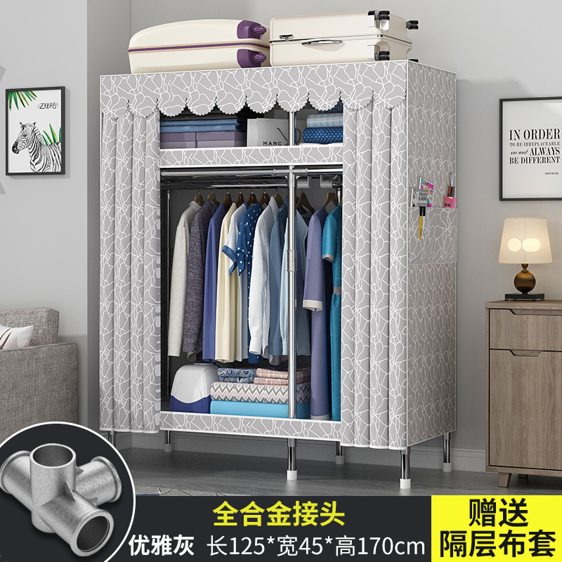 옷장 홈 침실 풀 스틸 프레임 어셈블리 간단한 천 옷장 기숙사 임대실 내구성 보관 Huageng스토어 가기