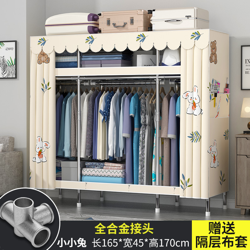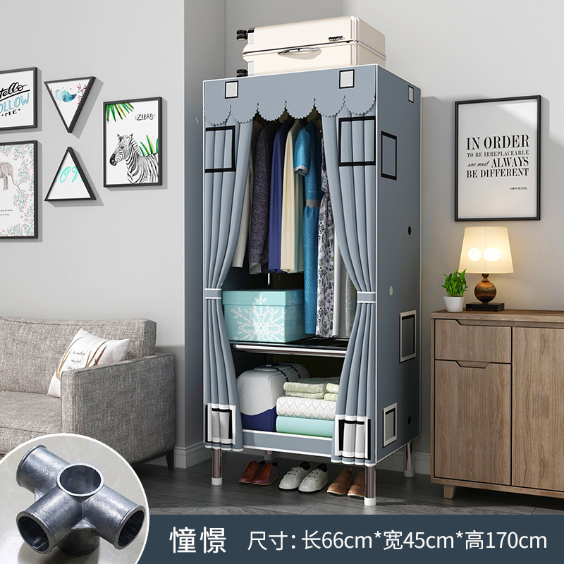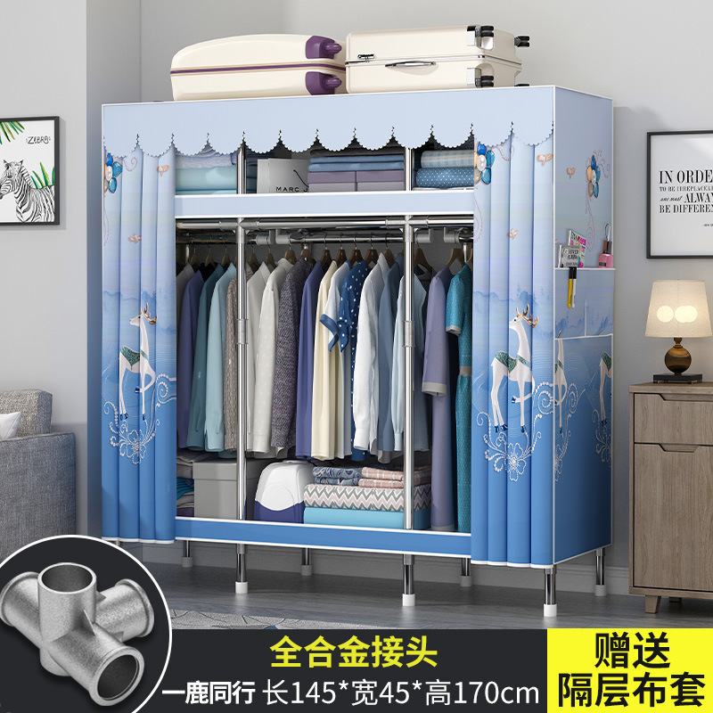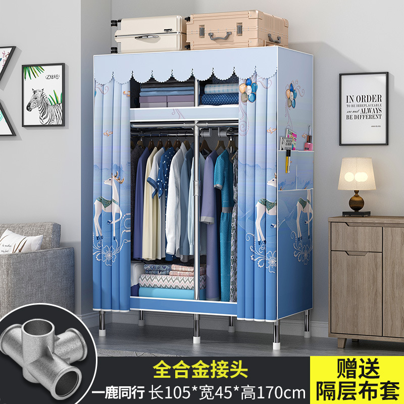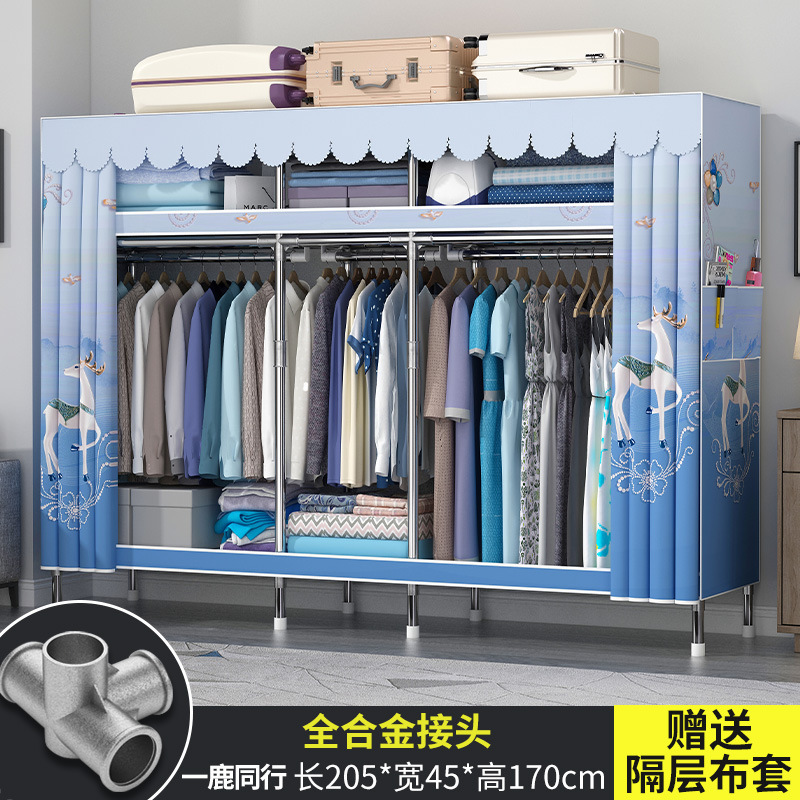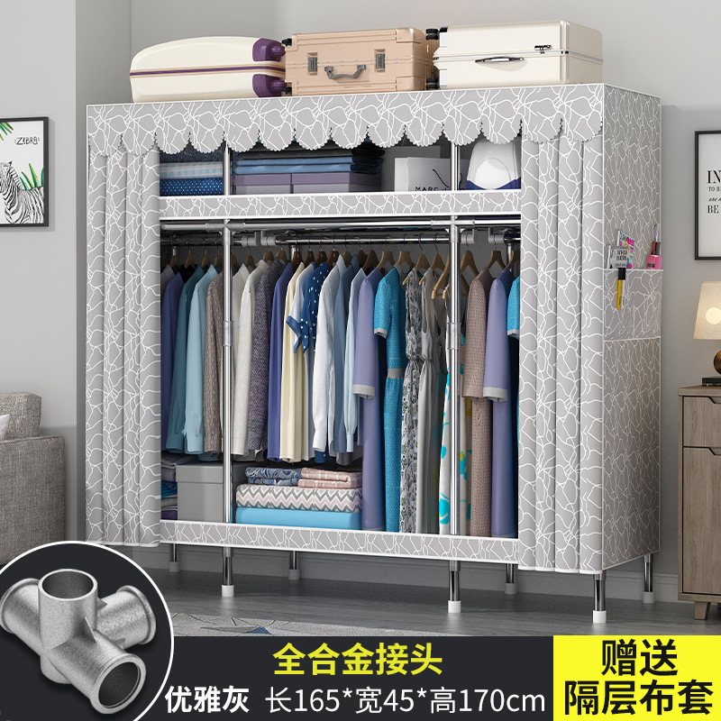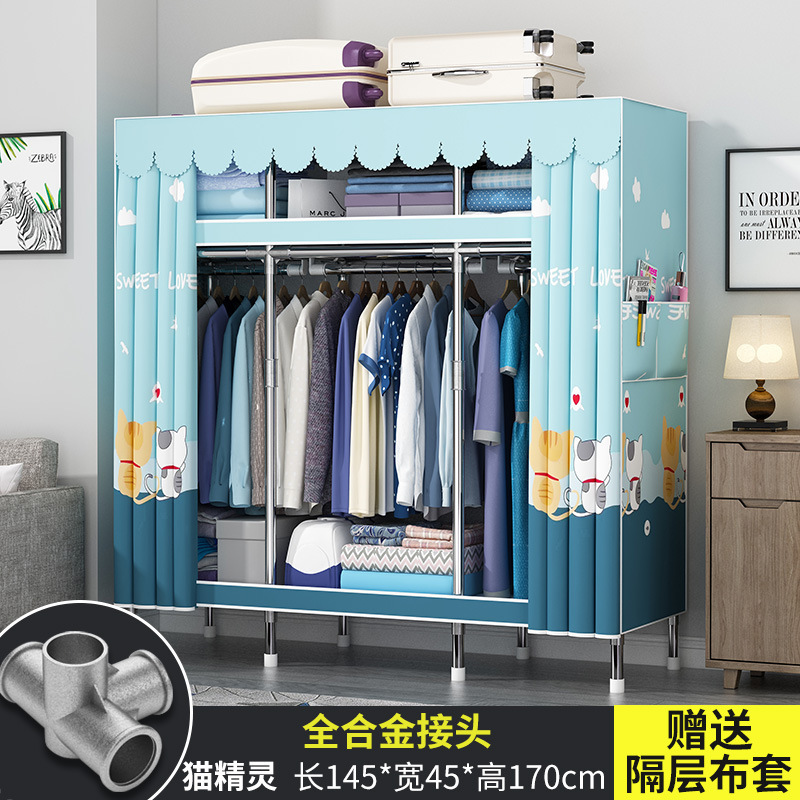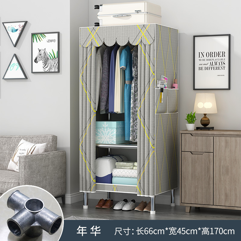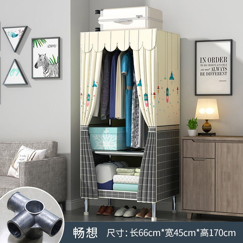 옷장 홈 침실 풀 스틸 프레임 어셈블리 간단한 천 옷장 기숙사 임대실 내구성 보관 Huageng스토어 가기