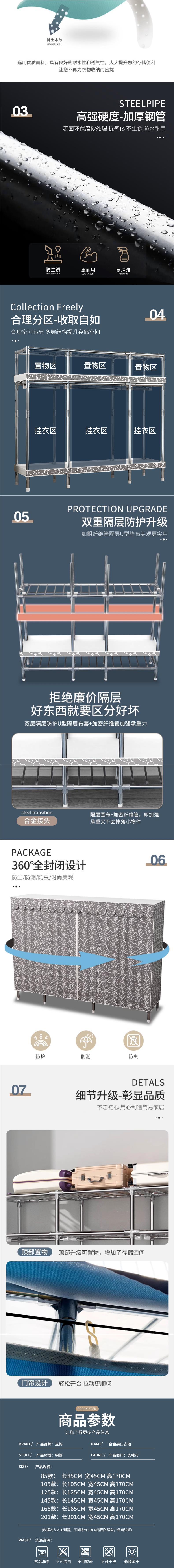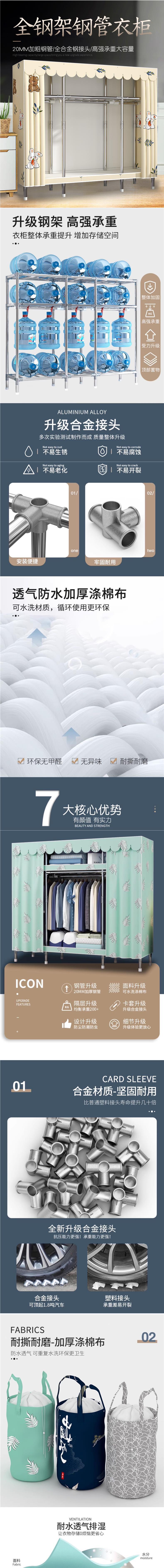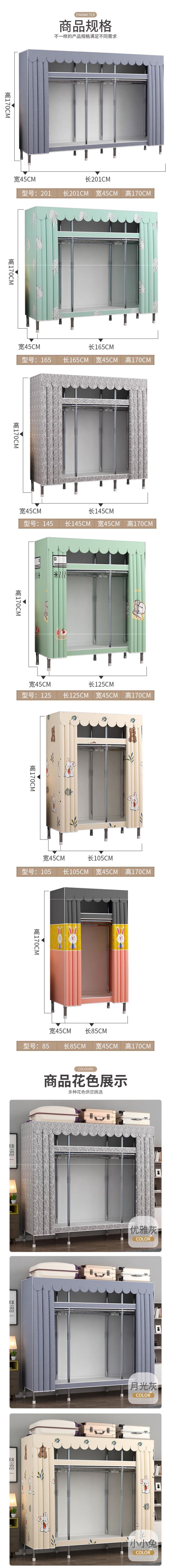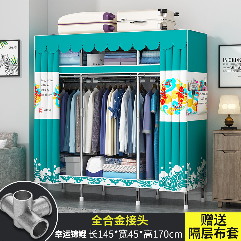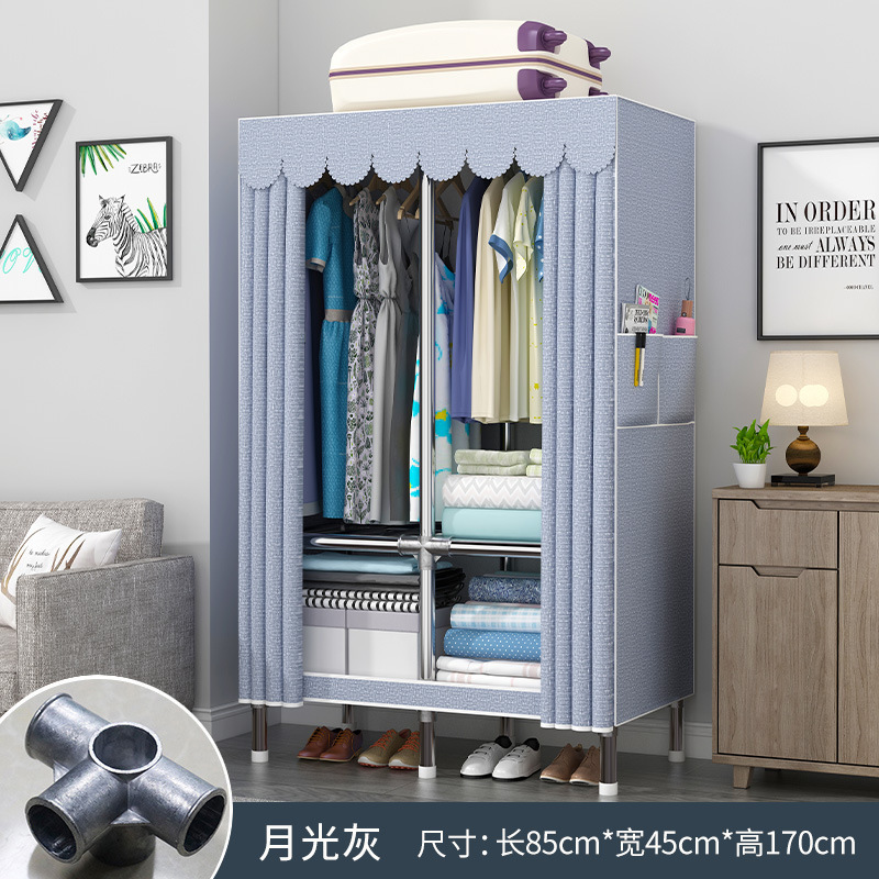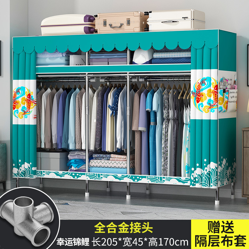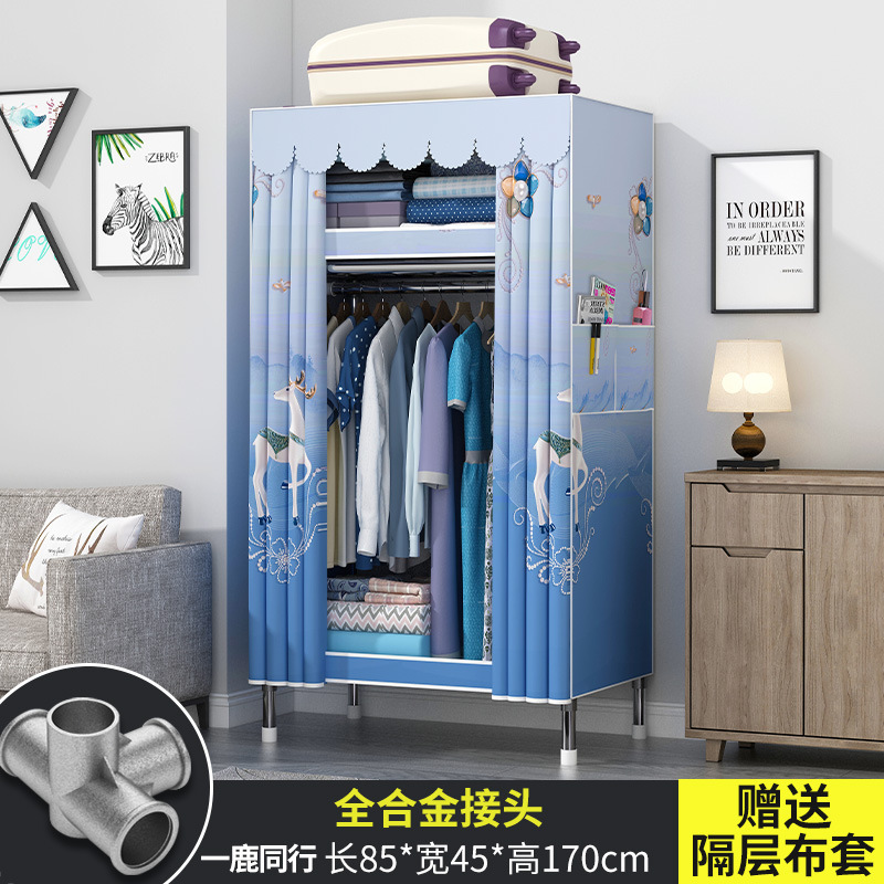 옷장 홈 침실 풀 스틸 프레임 어셈블리 간단한 천 옷장 기숙사 임대실 내구성 보관 Huageng스토어 가기