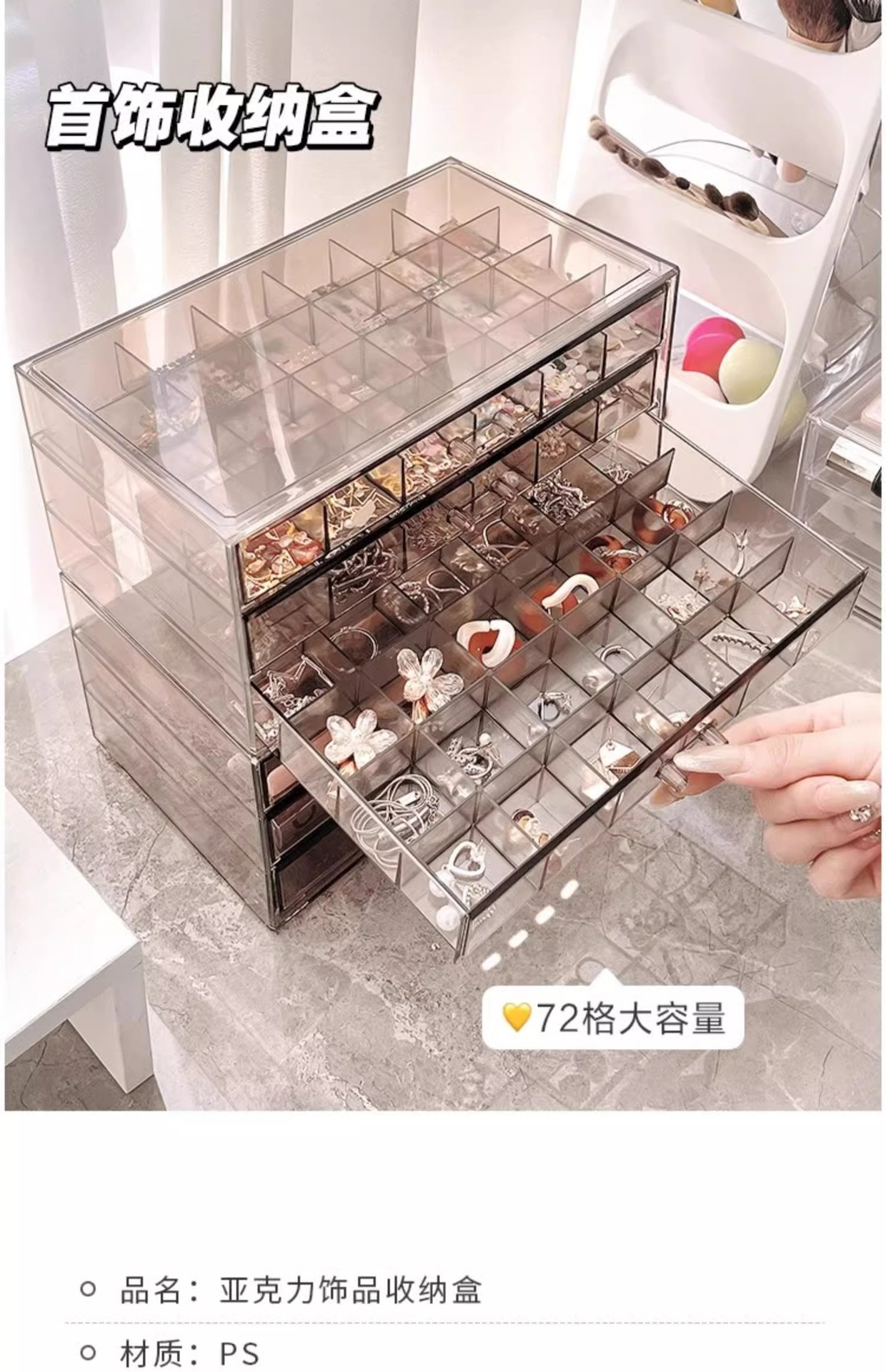 보석 저장 상자 대용량 다층 귀걸이 목걸이 상자 산화 방지 서랍 아크릴 저장 Huageng