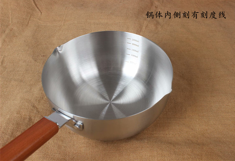 일본식 스테인레스 스틸 스노우 팬 두꺼운 우유 냄비 수프 냄비 냄비 많은 스푼 솔리드 우드 핸들 Huageng