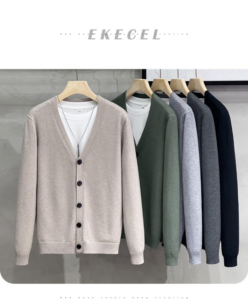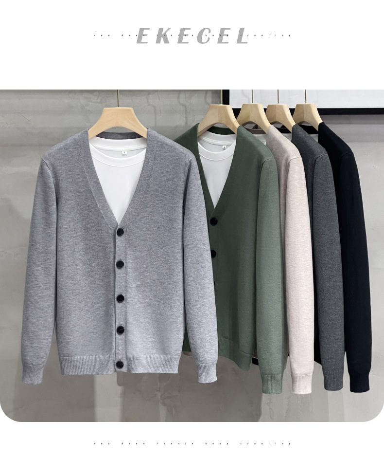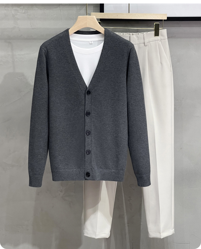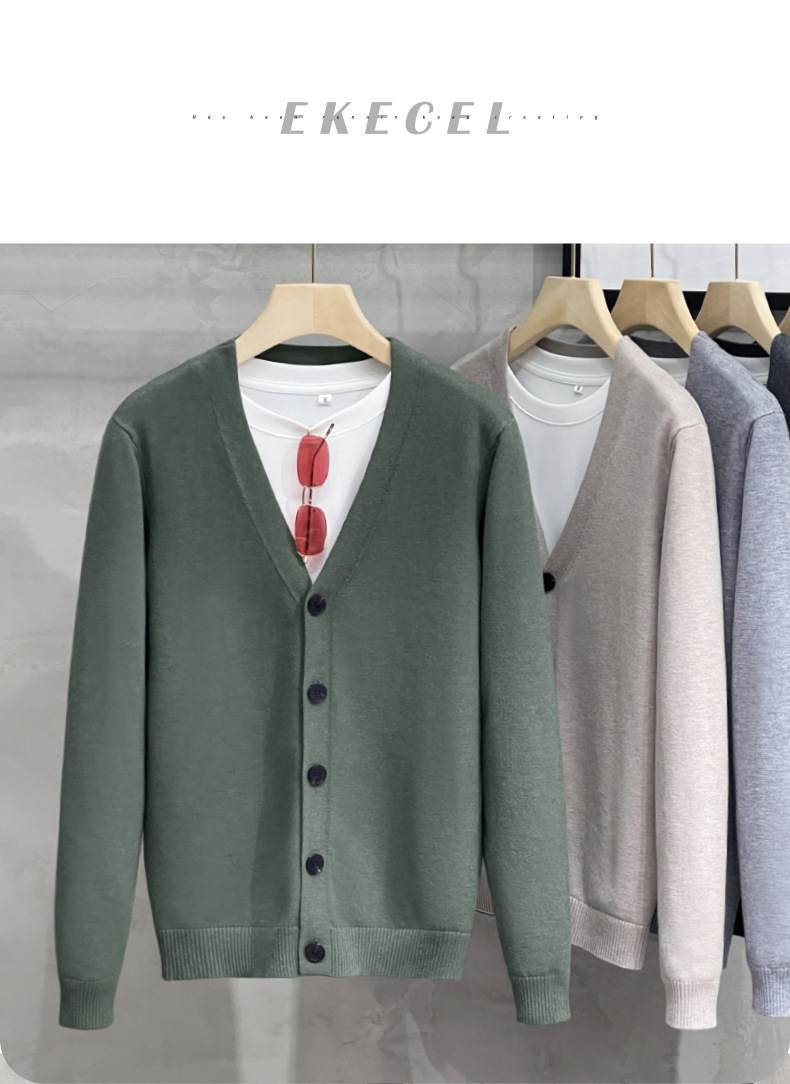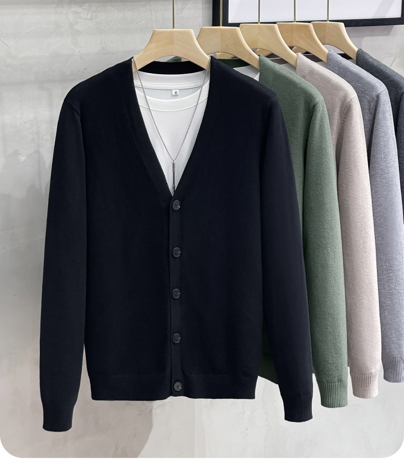 남성용 니트 스웨터 카디건 2024 새로운 V 넥 비즈니스 캐주얼 올 매치 봄과 가을 솔리드 컬러 스웨터 재킷스토어 가기