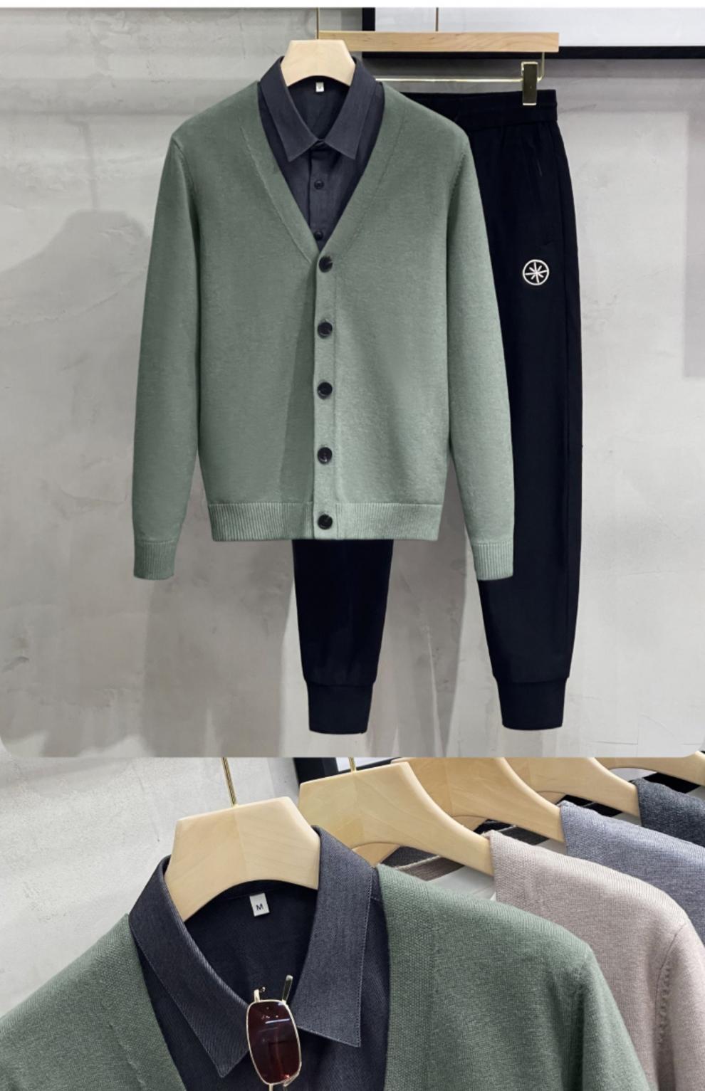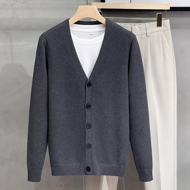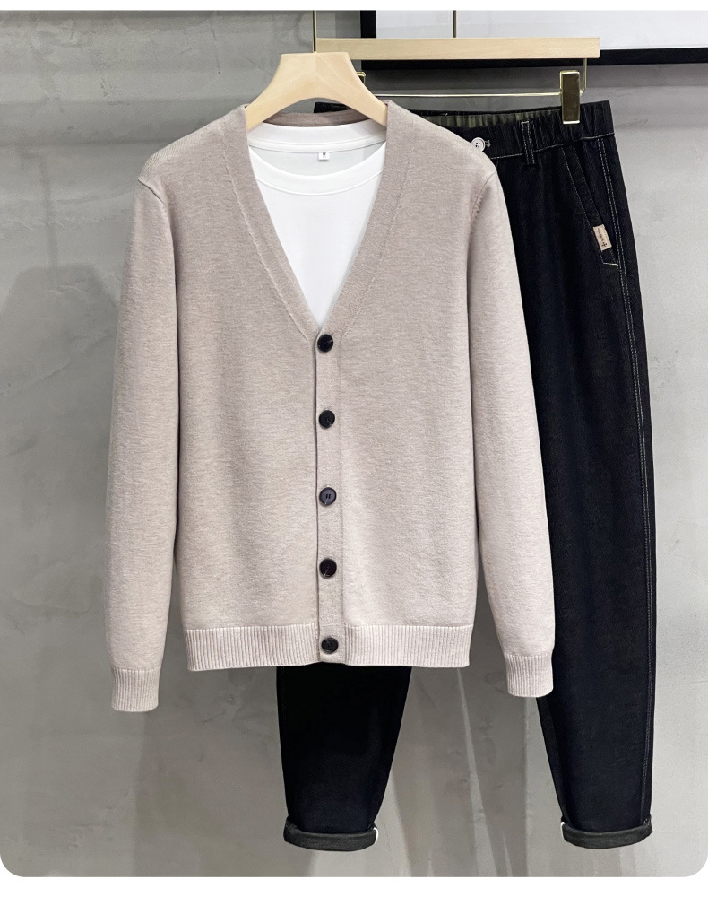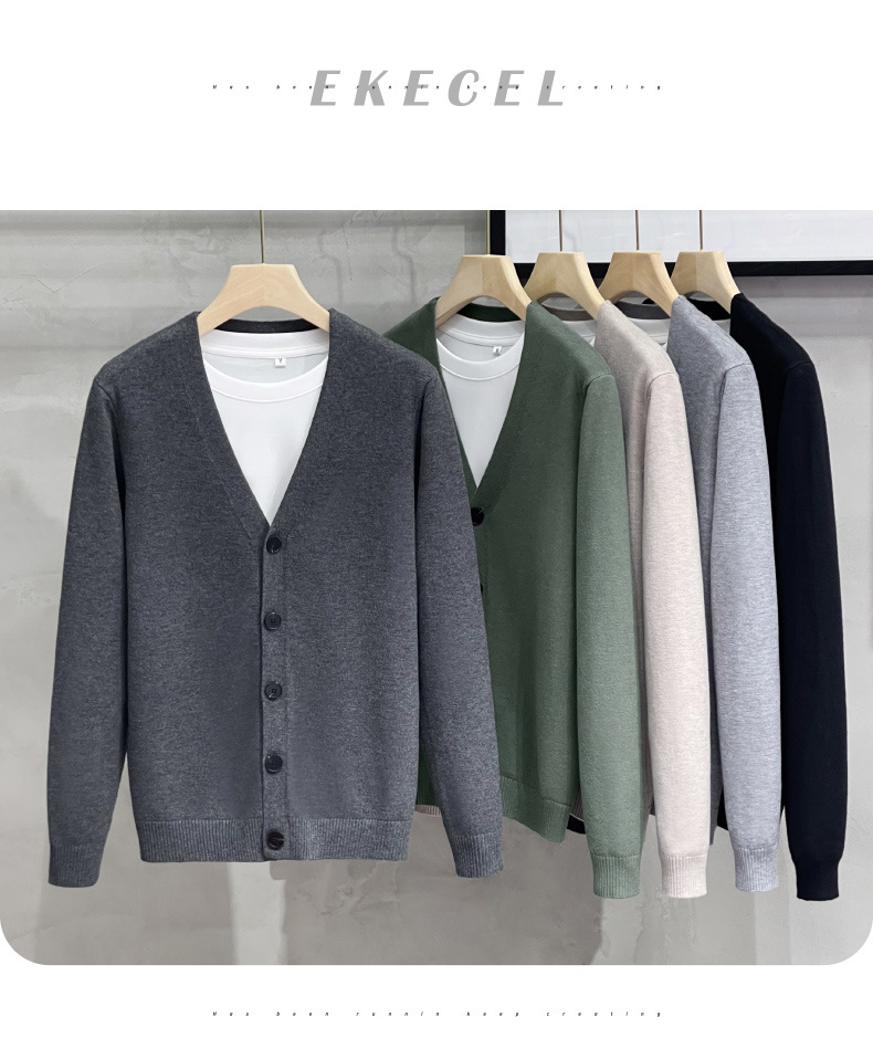 남성용 니트 스웨터 카디건 2024 새로운 V 넥 비즈니스 캐주얼 올 매치 봄과 가을 솔리드 컬러 스웨터 재킷스토어 가기