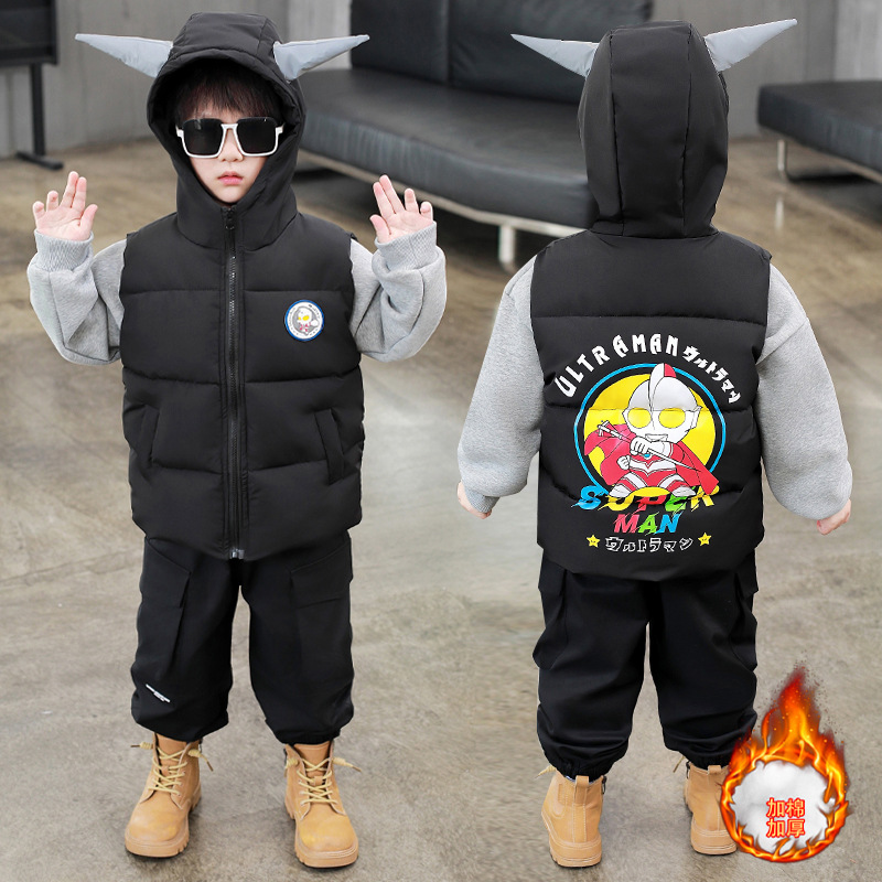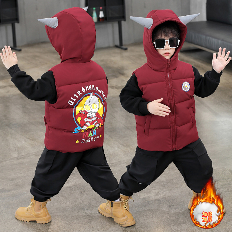 소년 조끼 어린이 2024 년 새로운 가을과 겨울 코튼 두꺼운 조끼 아기 다운 코튼 알트만 웨어 조끼