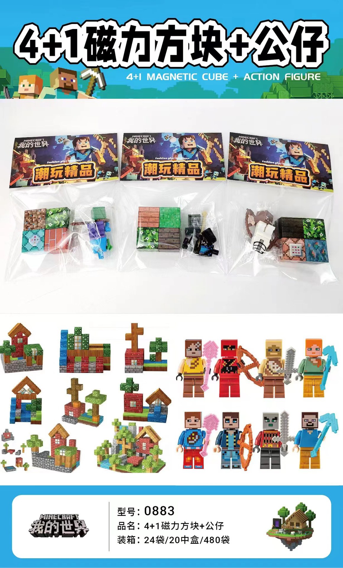 내 세계 자기 블록 인형 빌딩 블록 조립 어린이 diy 감압 과학 및 교육 장난감 만화 선물 도매스토어 가기