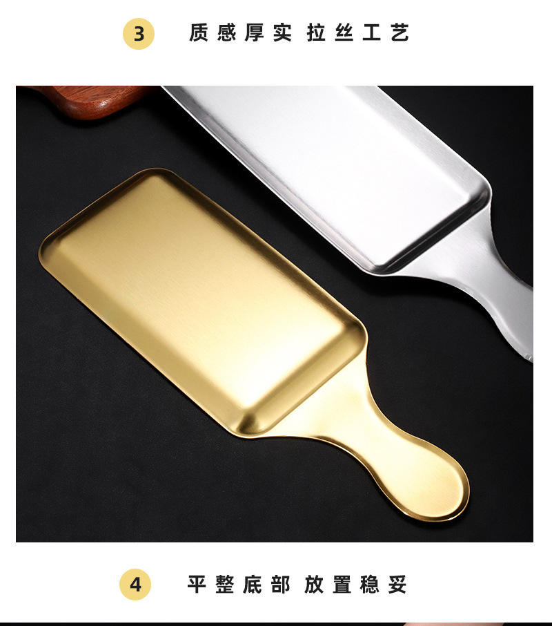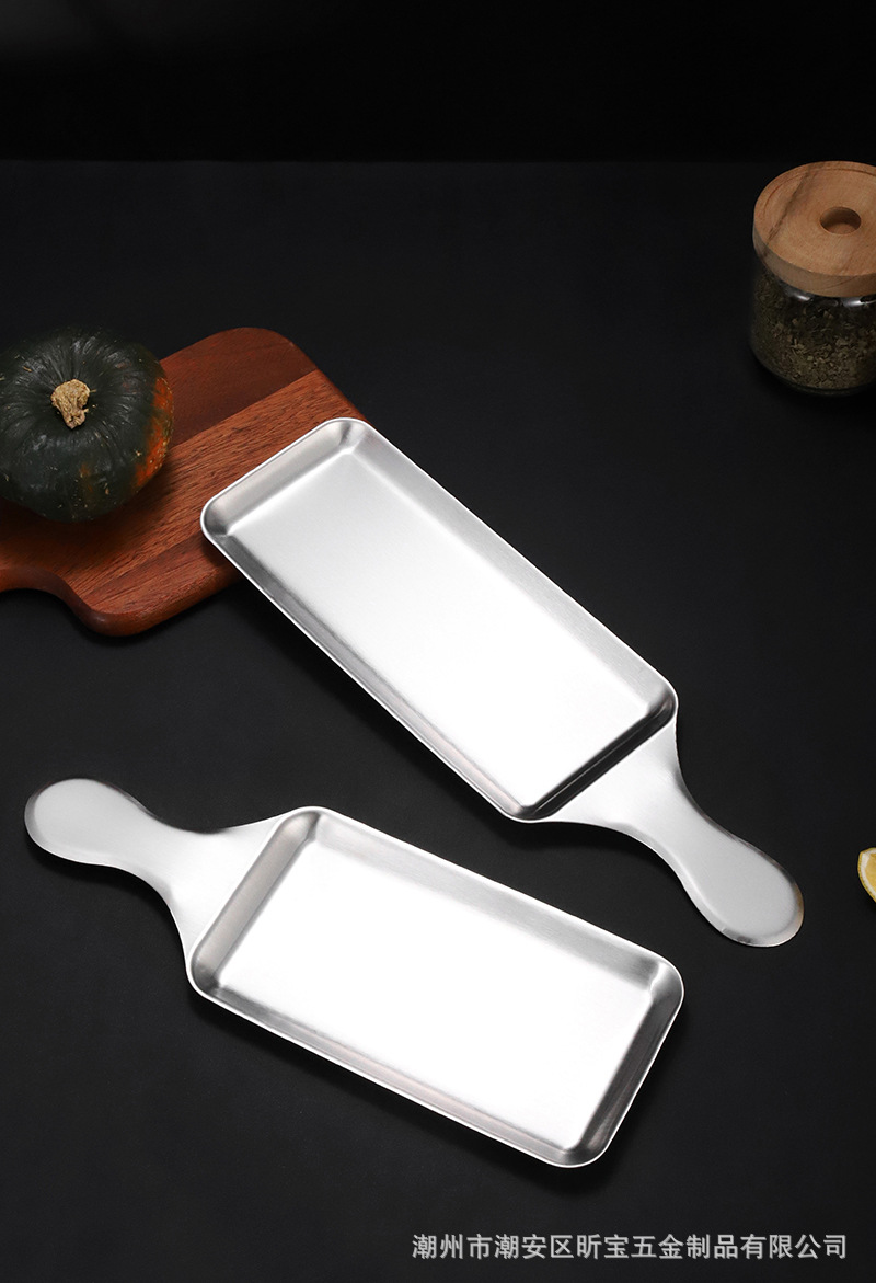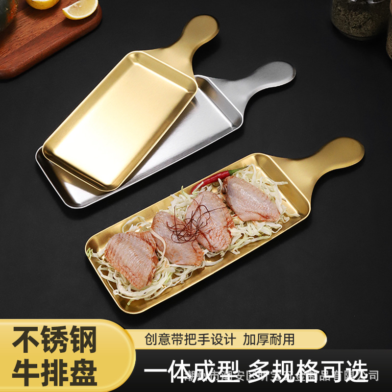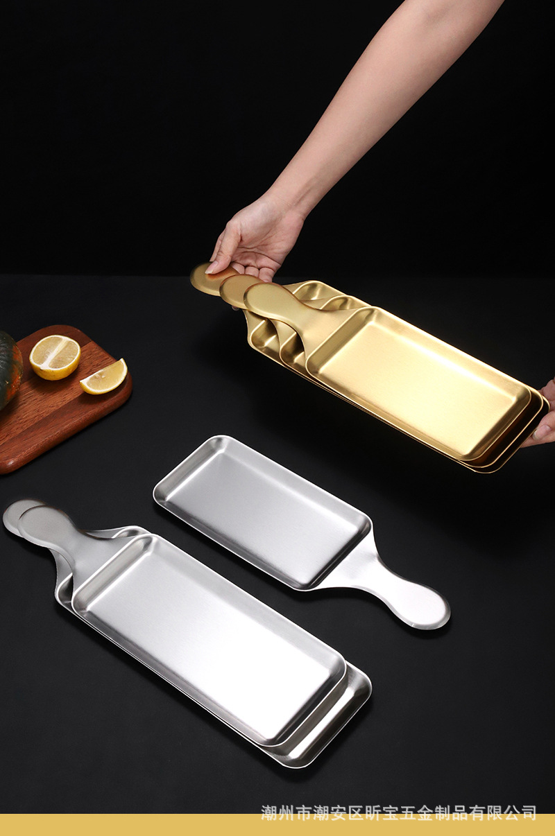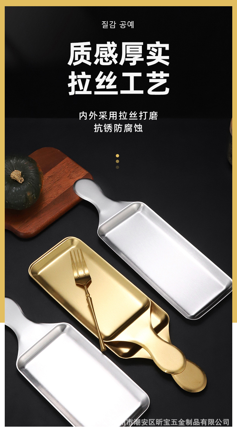 손잡이가 달린 한국식 스테인레스 스틸 스퀘어 플레이트 바비큐 숍 골든 식기 크리에이티브 통합 스낵 디저트 트레이스토어 가기