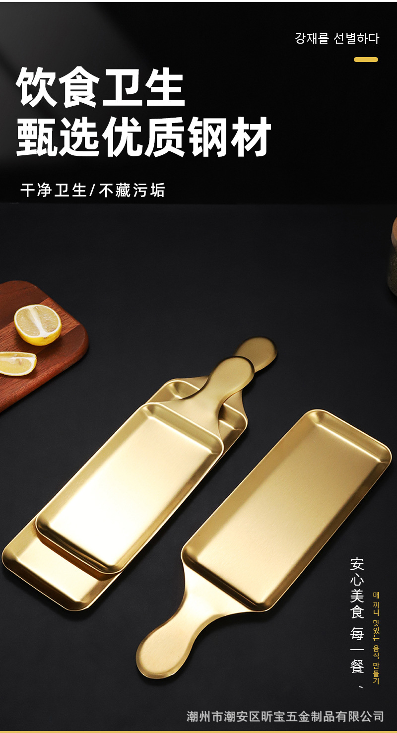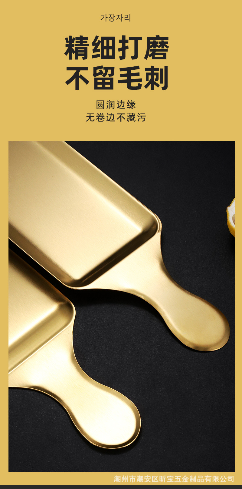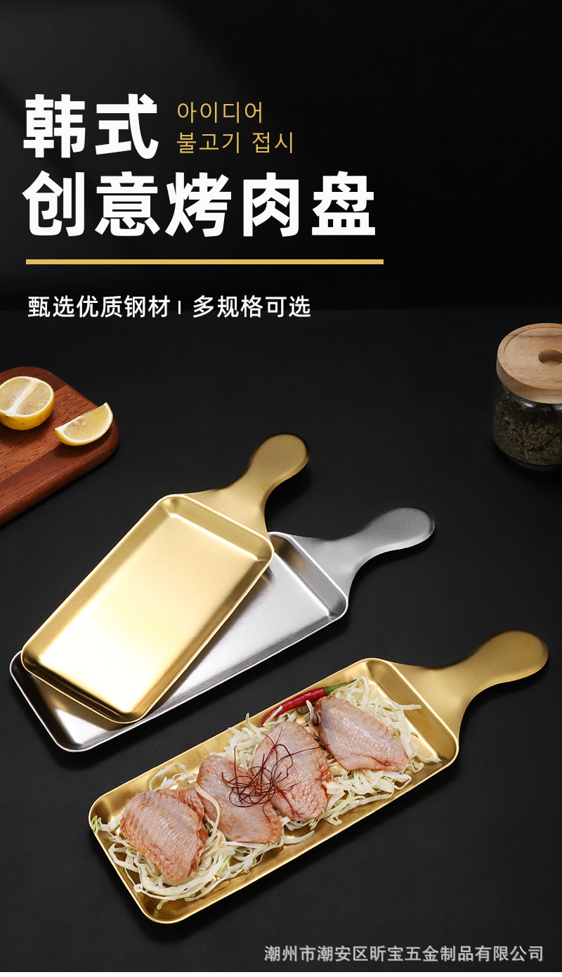 손잡이가 달린 한국식 스테인레스 스틸 스퀘어 플레이트 바비큐 숍 골든 식기 크리에이티브 통합 스낵 디저트 트레이
