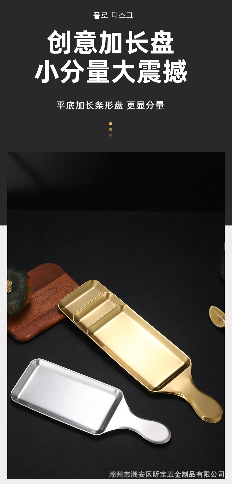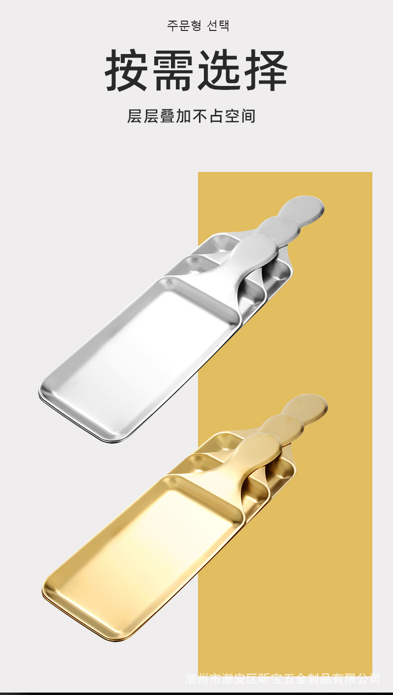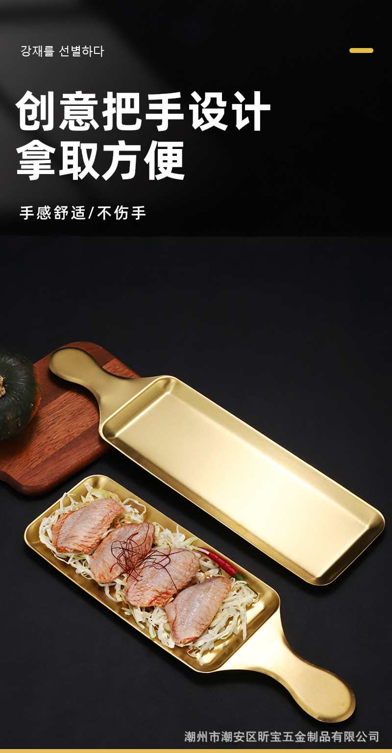 손잡이가 달린 한국식 스테인레스 스틸 스퀘어 플레이트 바비큐 숍 골든 식기 크리에이티브 통합 스낵 디저트 트레이