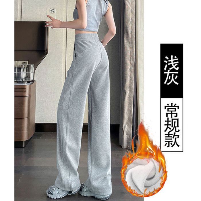 단색 한국 버전의 가을과 겨울 2024 새로운 기모 느슨한 높은 허리 바나나 슬리밍 스포츠 작은 스트레이트 와이드 다리 바지스토어 가기