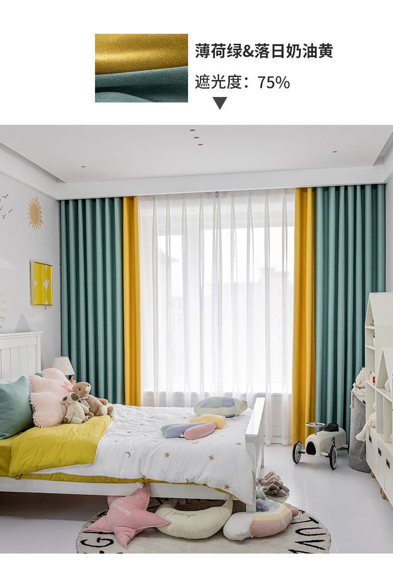 황금 매미 커튼 전체 음영 두꺼운 단열 북유럽 단순 현대 빛 럭셔리 거실 침실 커튼 완공 Huageng스토어 가기