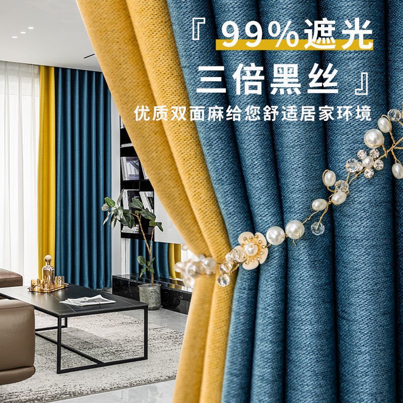 황금 매미 커튼 전체 음영 두꺼운 단열 북유럽 단순 현대 빛 럭셔리 거실 침실 커튼 완공 Huageng