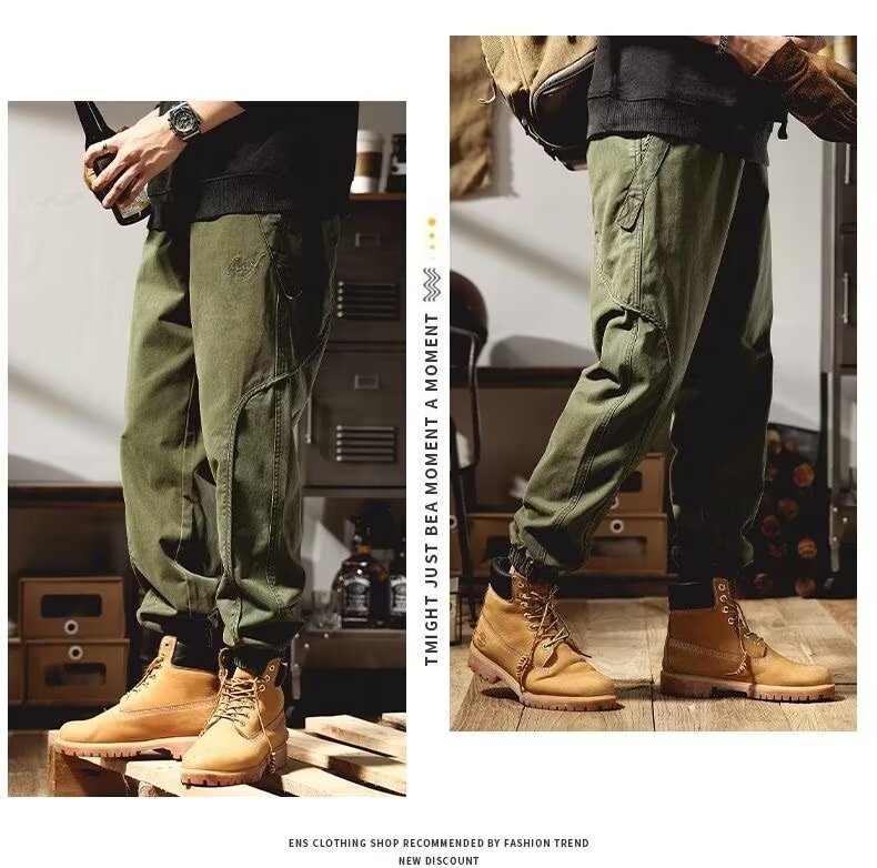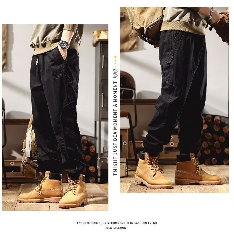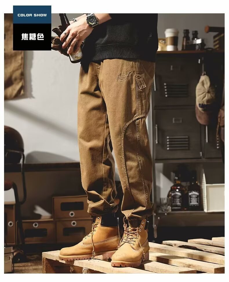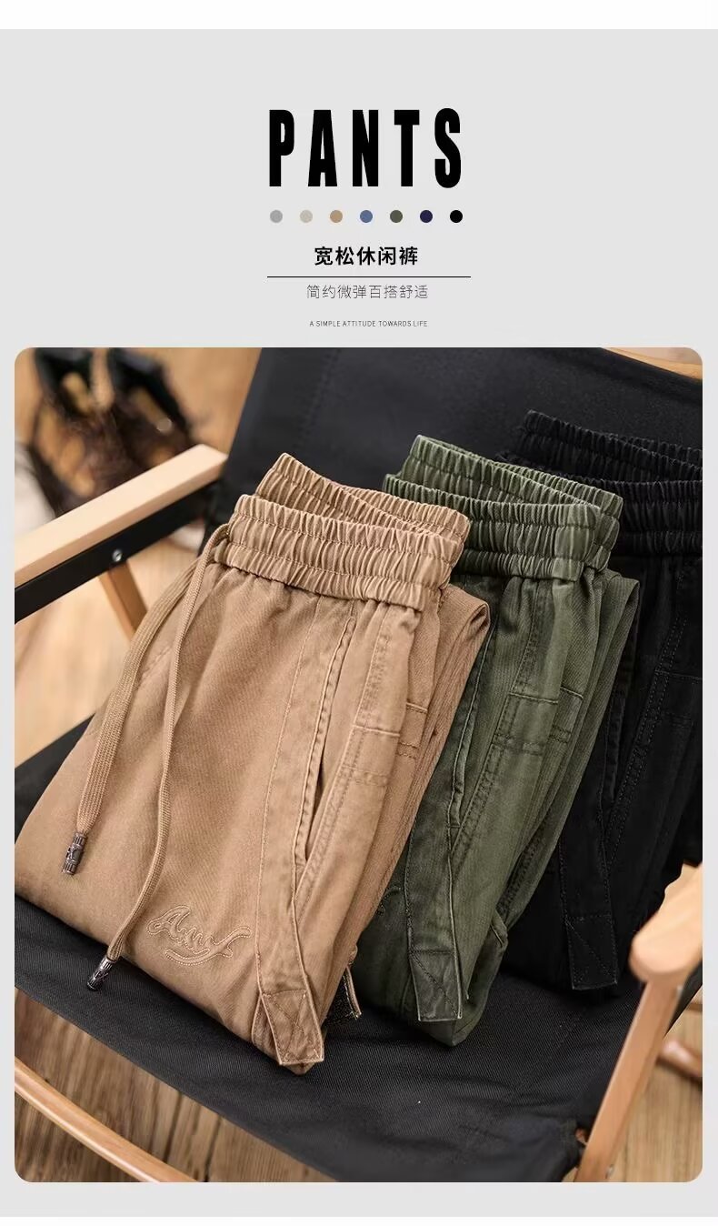 다크 브라운 내마모성 2024 가을 및 겨울 새로운 미국 스타일 레트로 쿨루즈 바지 남성용 느슨한 다리 하렌 캐주얼 바지스토어 가기