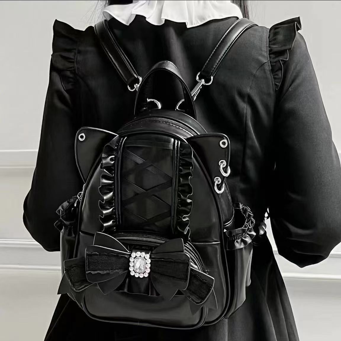 새로운 일본식 귀여운 리본 여성 가방 레이스 고양이 귀 백팩 학생 여행용 대용량 백팩 다용도스토어 가기