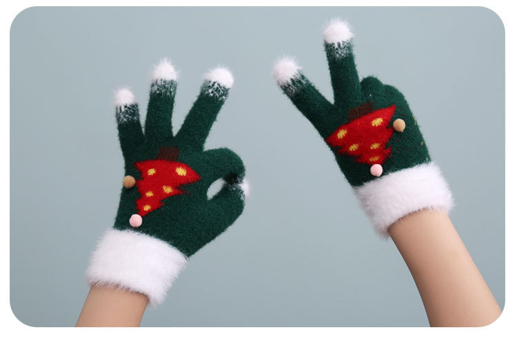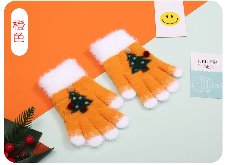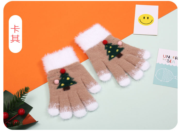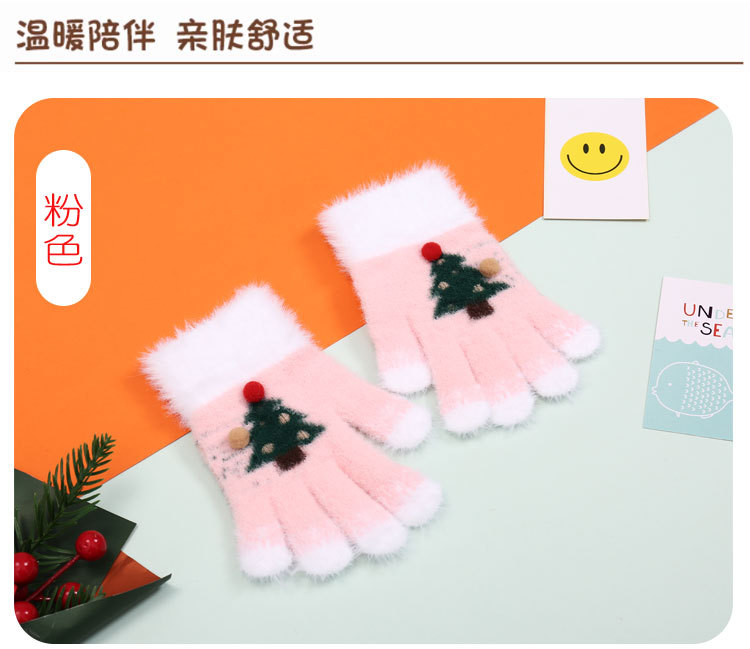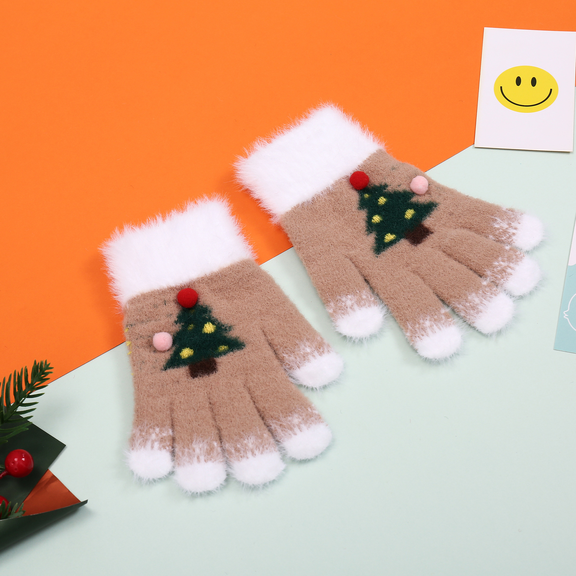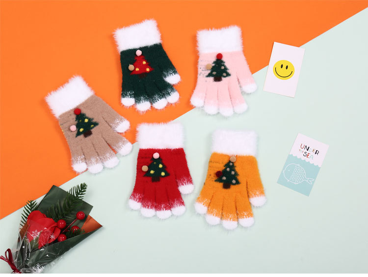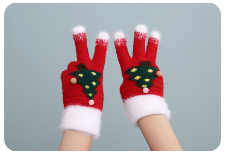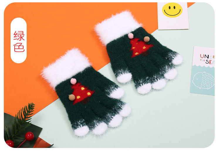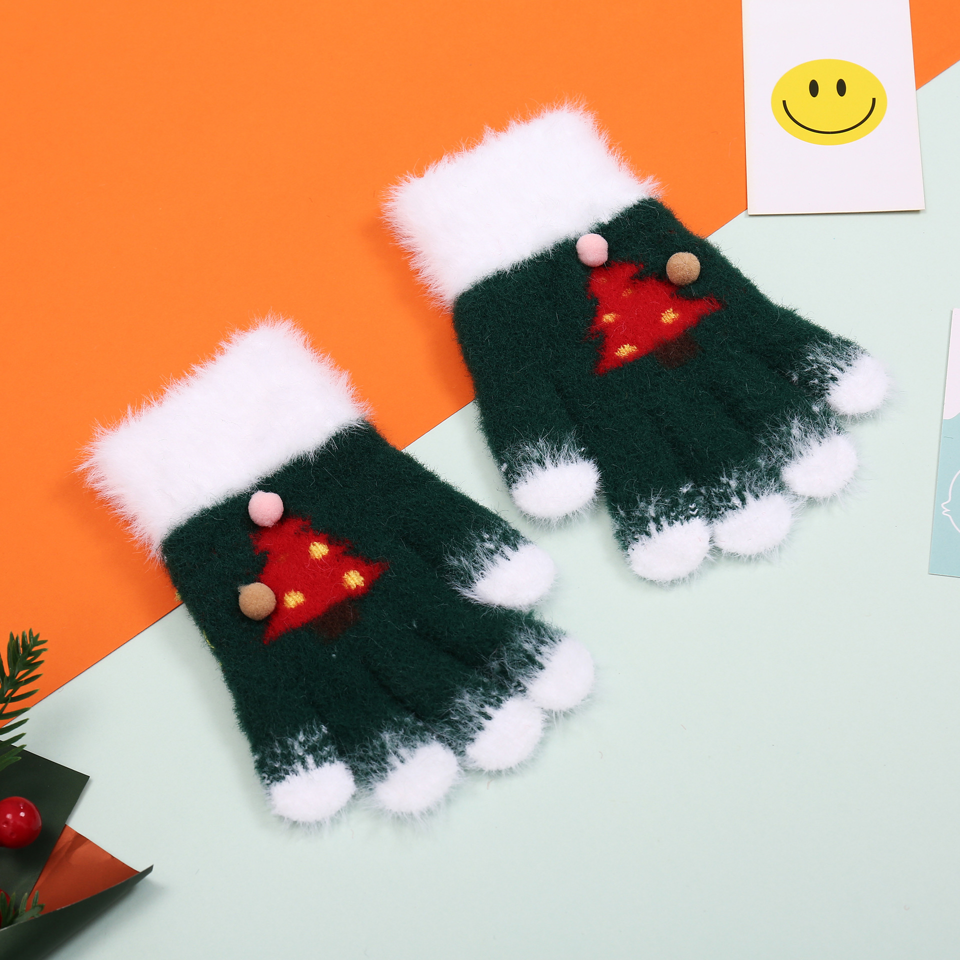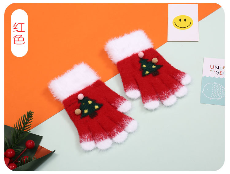 겨울 어린이 따뜻한 니트 장갑 귀여운 붉은 감기 방지 손가락 소녀 아기 크리스마스 선물 4-8 세