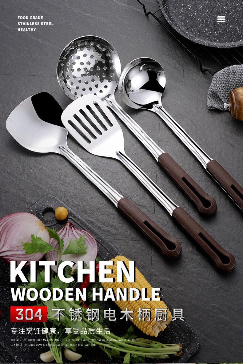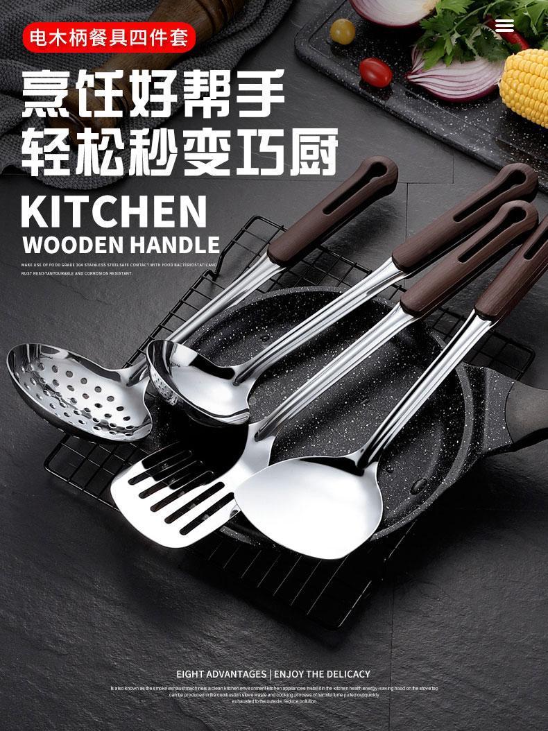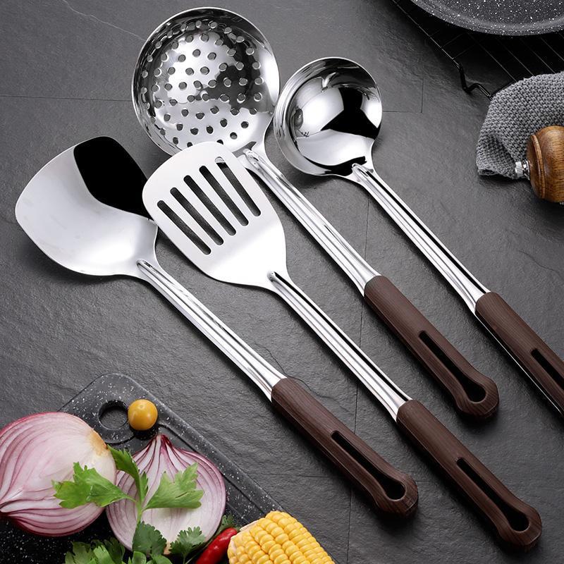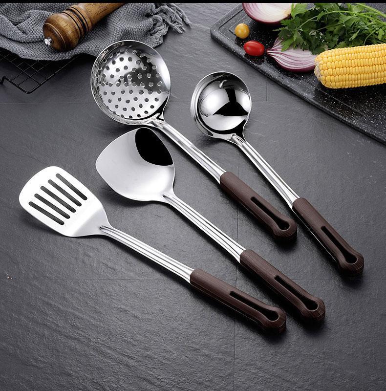 304 스테인레스 스틸 주방 주방 용품 4 피스 주걱 안티 스케일 두껍게 볶은 주걱 주방 주걱 세트 소쿠리 핑 런