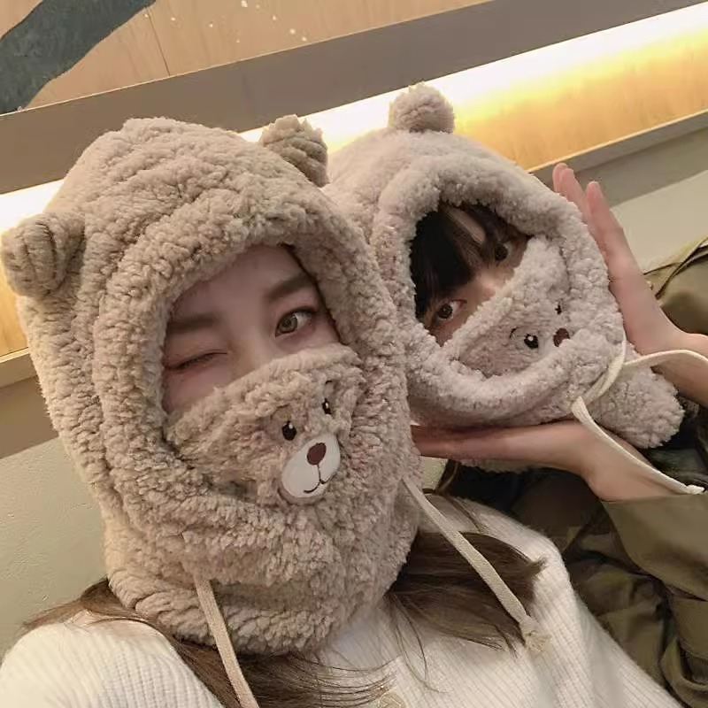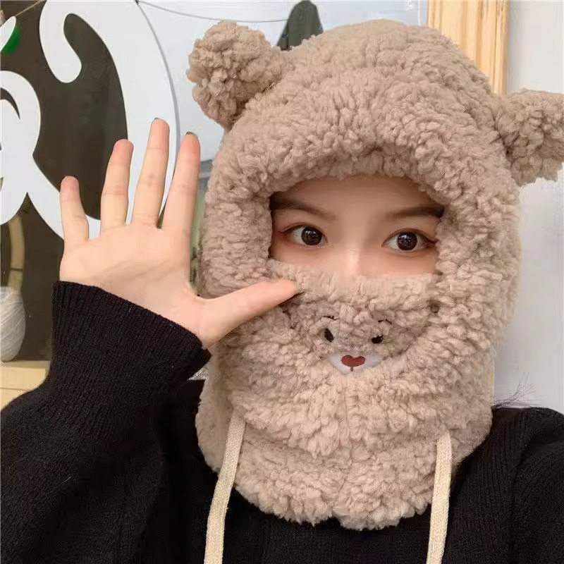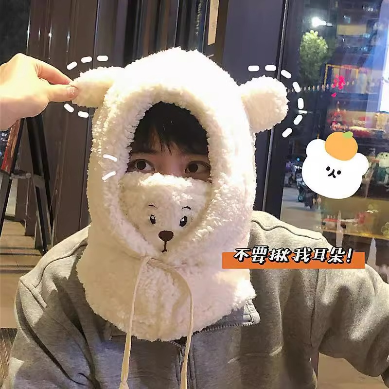 곰 마스크 스카프 겨울 마스크 통합 귀 보호 모자 겨울 봉제 스카프 후드 방풍 따뜻한 양스토어 가기