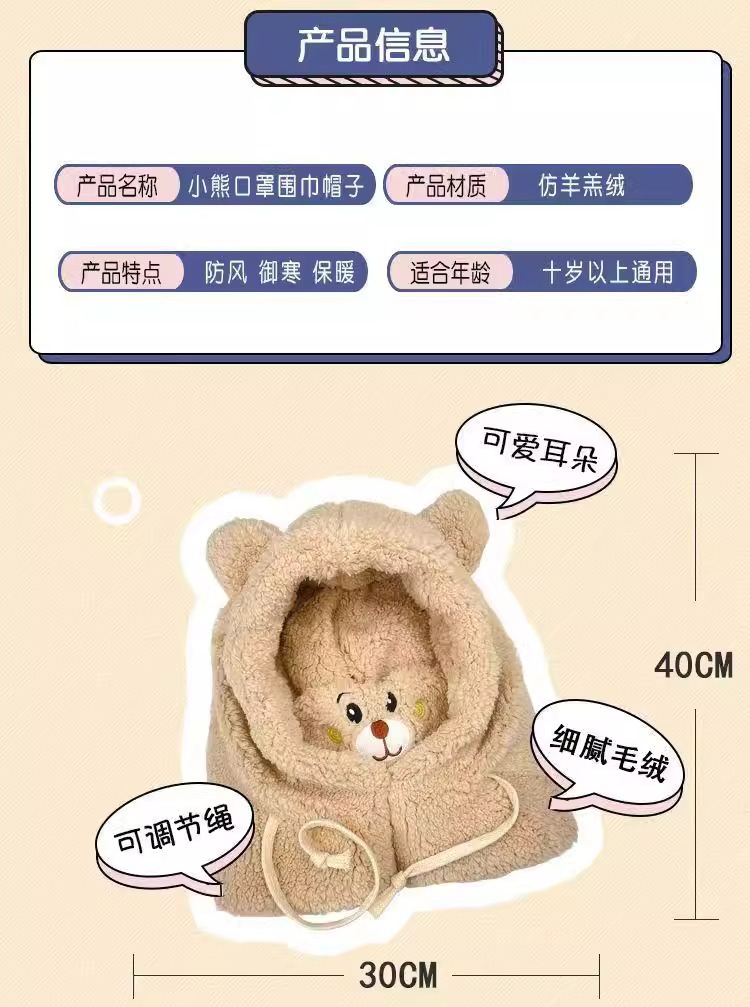 곰 마스크 스카프 겨울 마스크 통합 귀 보호 모자 겨울 봉제 스카프 후드 방풍 따뜻한 양