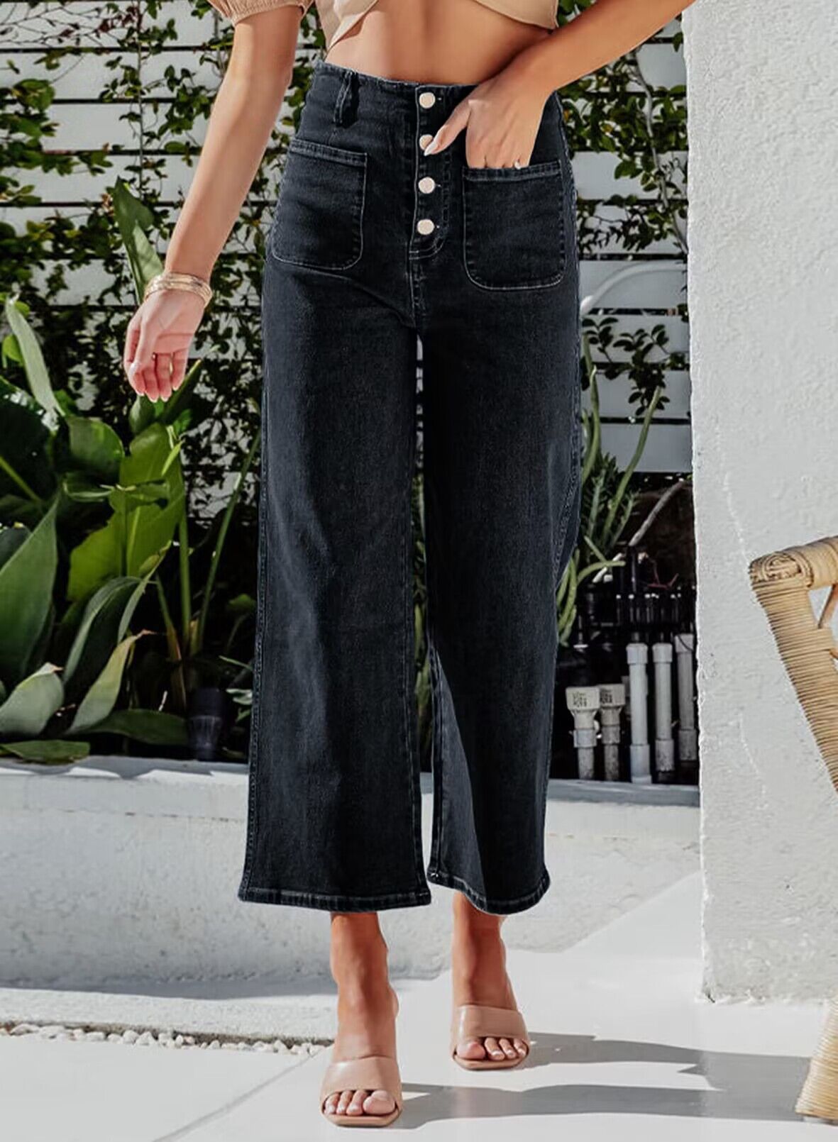 DY 유럽과 미국의 복고풍 루즈 스트레이트 싱글 브레스트 하이 웨이스트 와이드 레그 여성 청바지