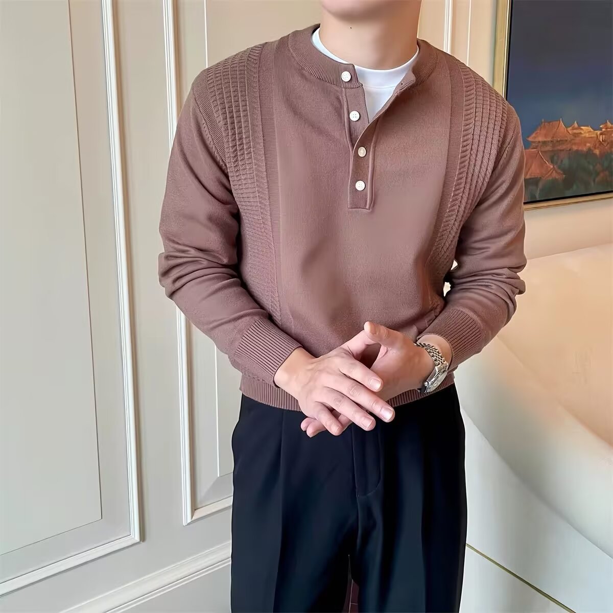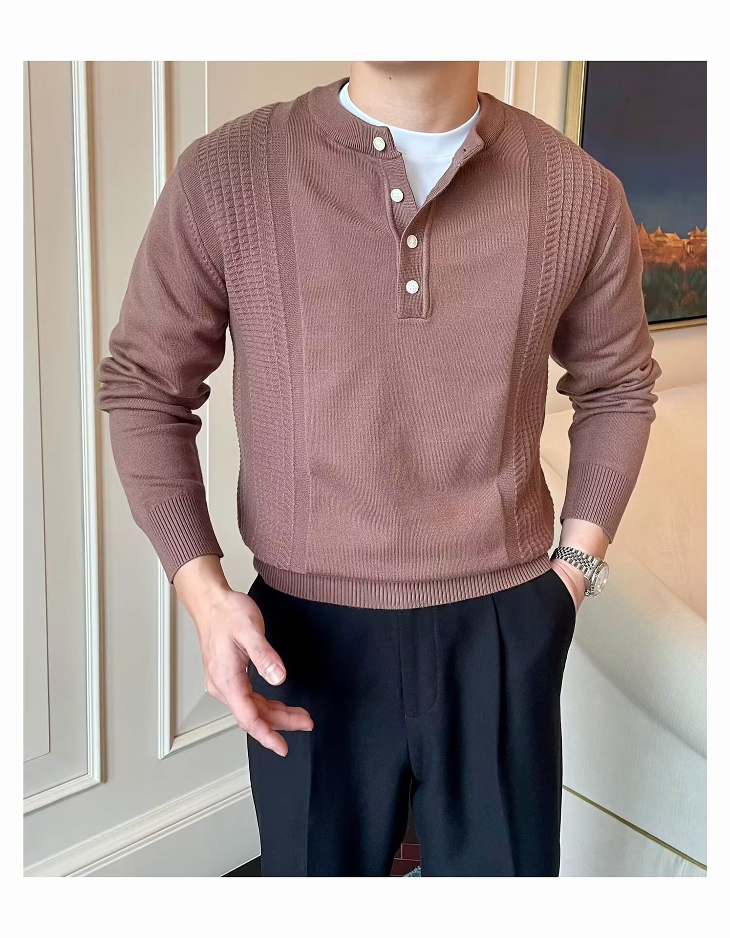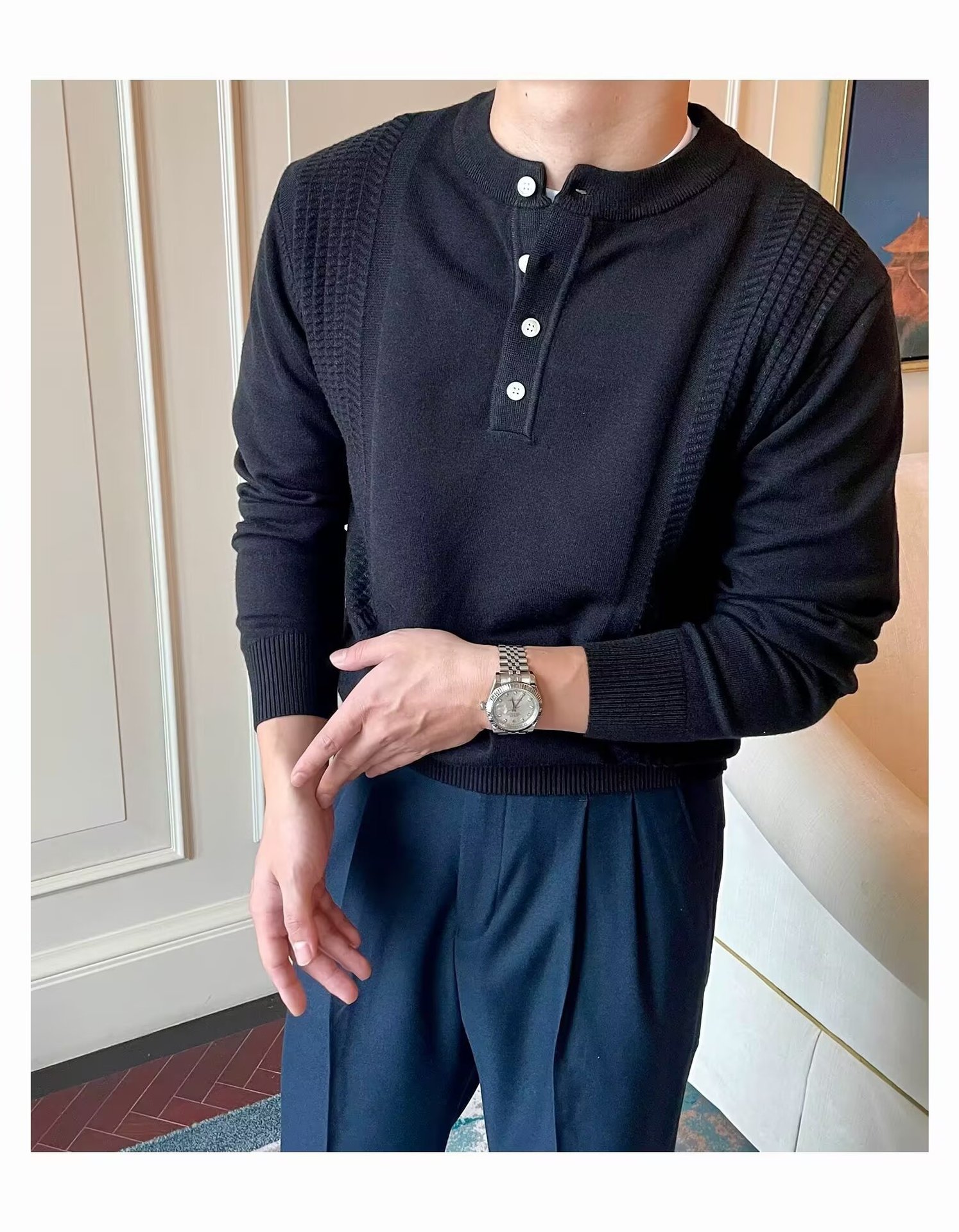 2024 가을과 겨울 새로운 스웨터 남성용 슬림 핏 넥 니트 스웨터 가을과 겨울 내베이스 셔츠