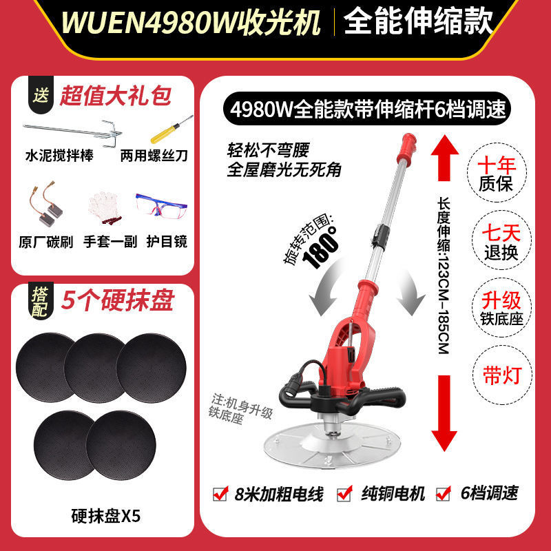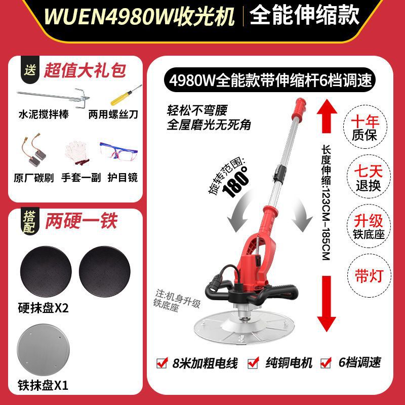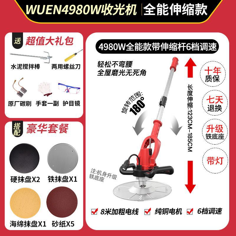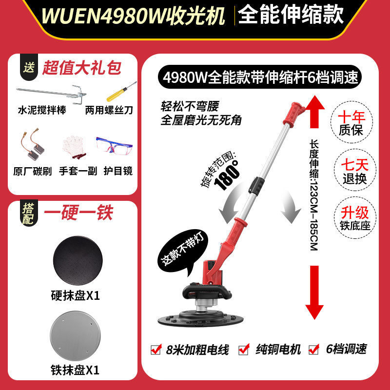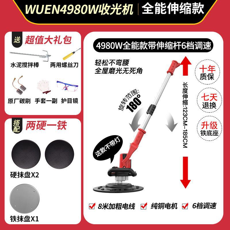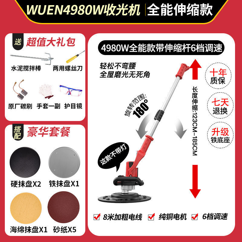 • 조명 + 철 베이스가 포함된 4980W 업그레이드된 이중 목적 연장 폴 - 하드 드라이브 2개 + 철 디스크 1개 + 스폰지 디스크 1개 + 사포 5개