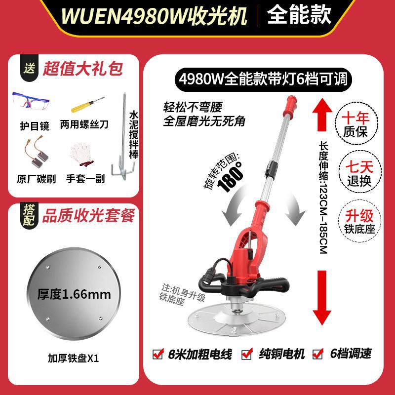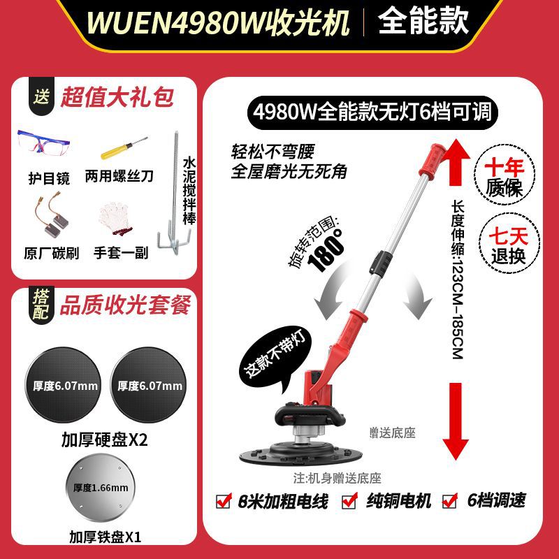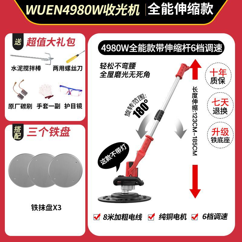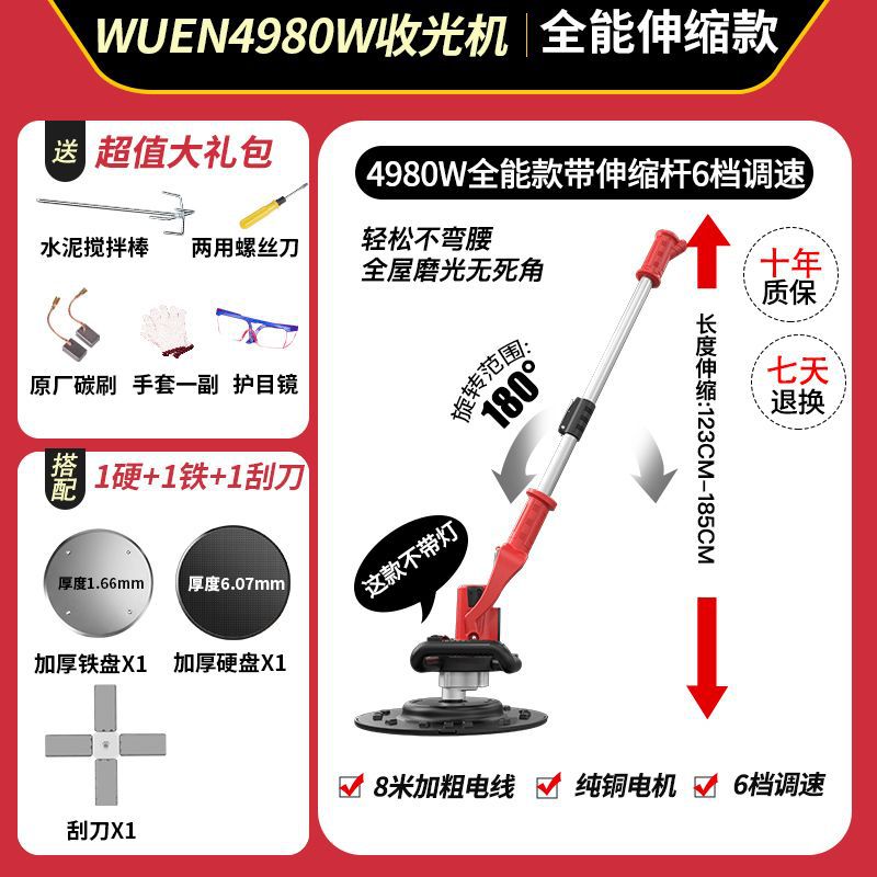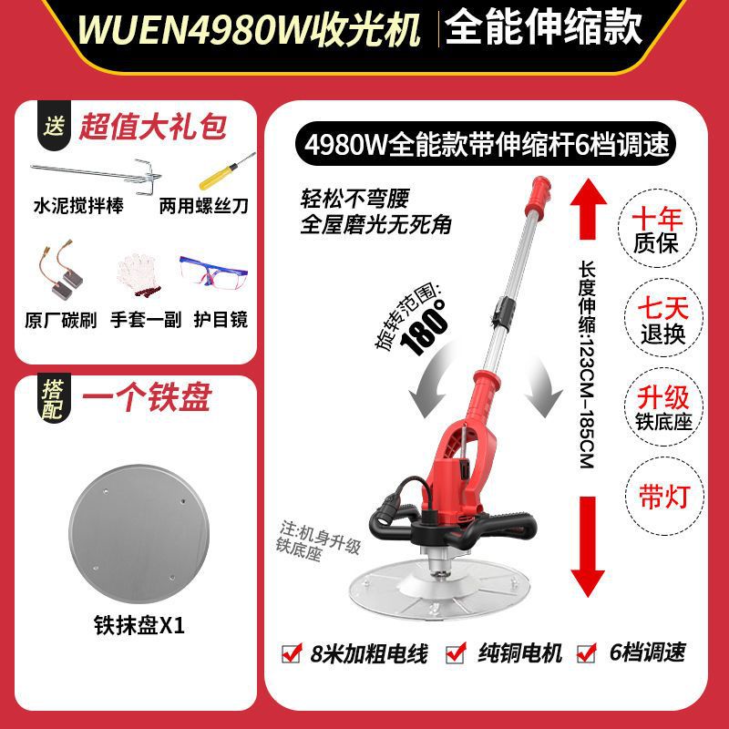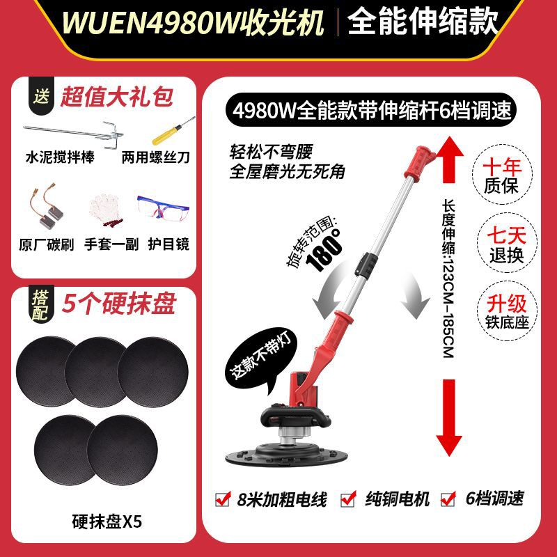• 조명 + 철 베이스가 포함된 4980W 업그레이드된 이중 목적 연장 폴 - 하드 드라이브 2개 + 철 디스크 1개 + 스폰지 디스크 1개 + 사포 5개