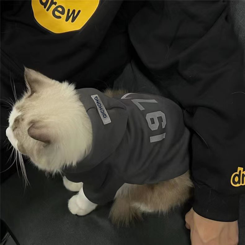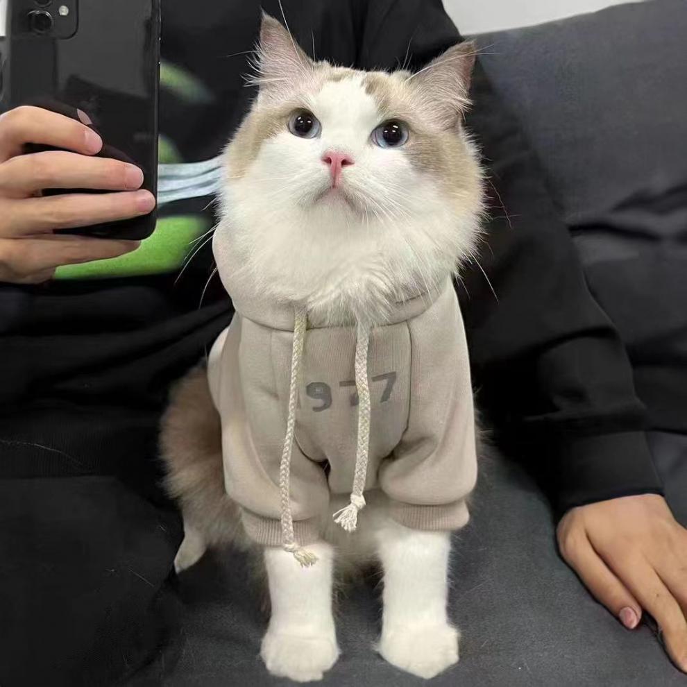 애완 동물 고양이 고양이 옷 가을과 겨울 옷 따뜻한 귀여운 우유 고양이 푸른 고양이 짧은 후드 기모 스웨트 셔츠스토어 가기
