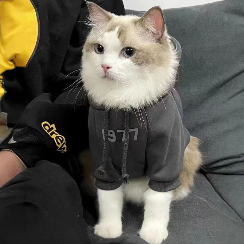 애완 동물 고양이 고양이 옷 가을과 겨울 옷 따뜻한 귀여운 우유 고양이 푸른 고양이 짧은 후드 기모 스웨트 셔츠