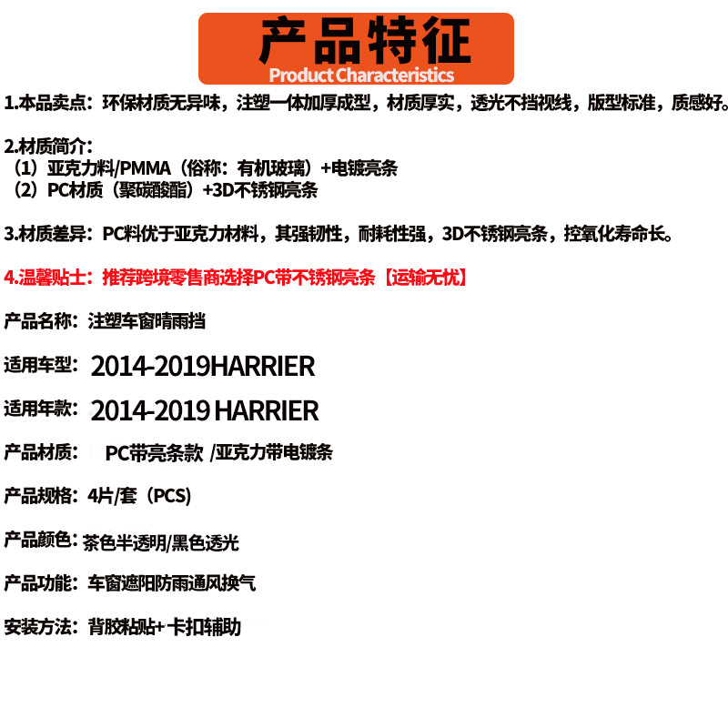 토요타 하리어 차량용 윈도우바이저, 토요타하리어2014+ 차량용 선바이저