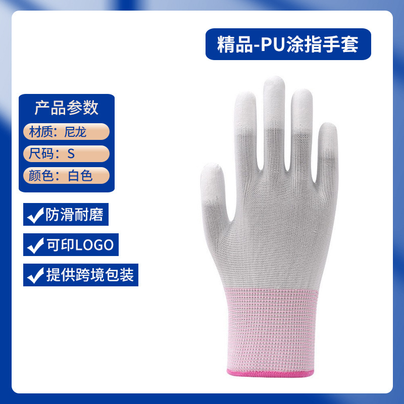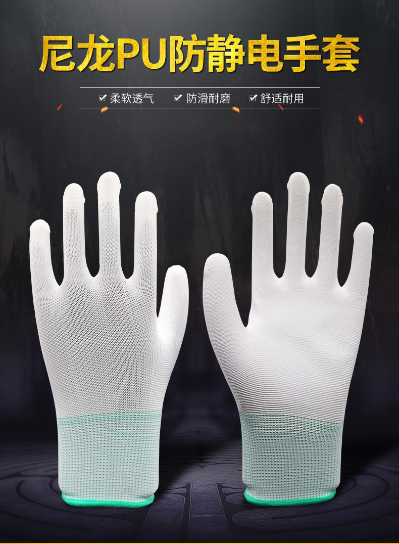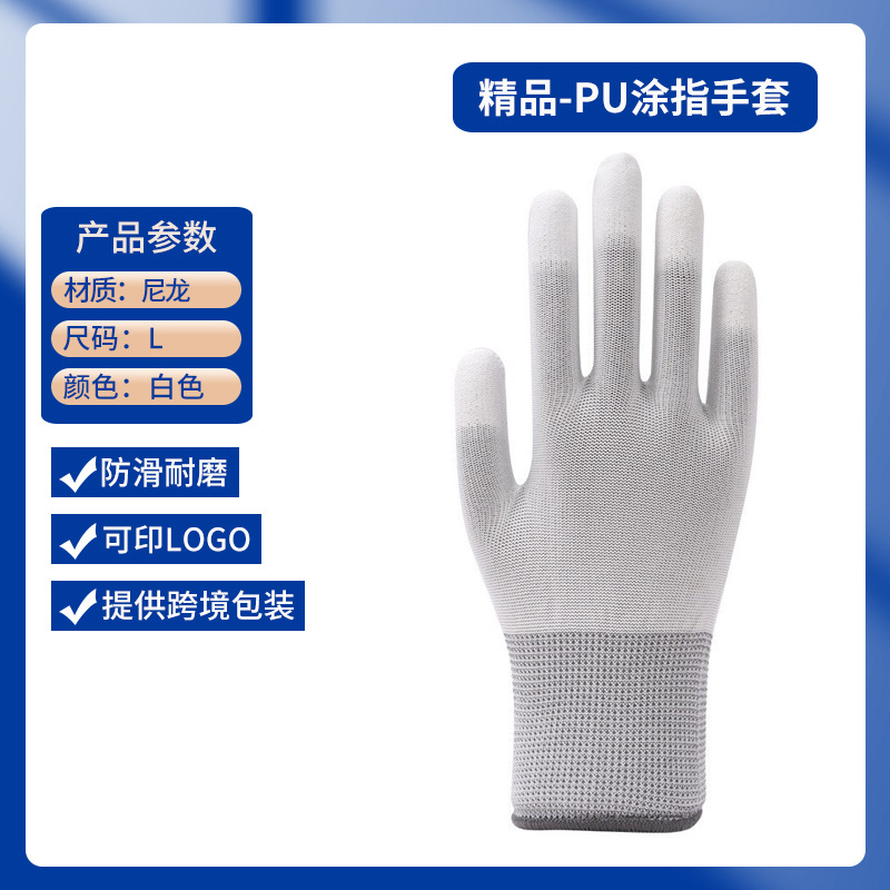 나일론 PU 코팅 핑거 가드 장갑, 개별 포장, 흰색 정전기 방지 노동 보호 장갑, 내마모성 및 미끄럼 방지, 제조업체 코팅 핑거 가드 HS8스토어 가기