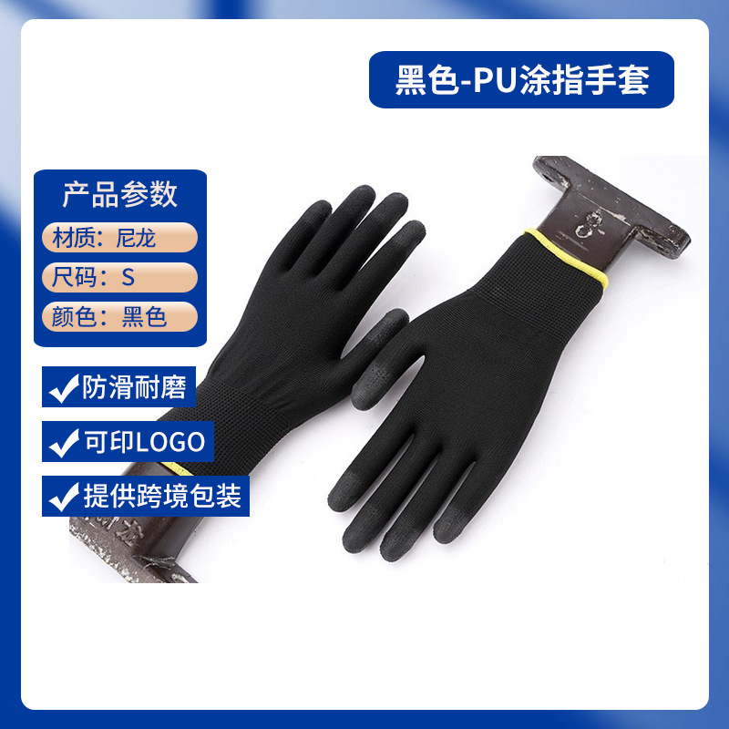 • 블랙 PU 코팅 손가락 장갑 사이즈 S