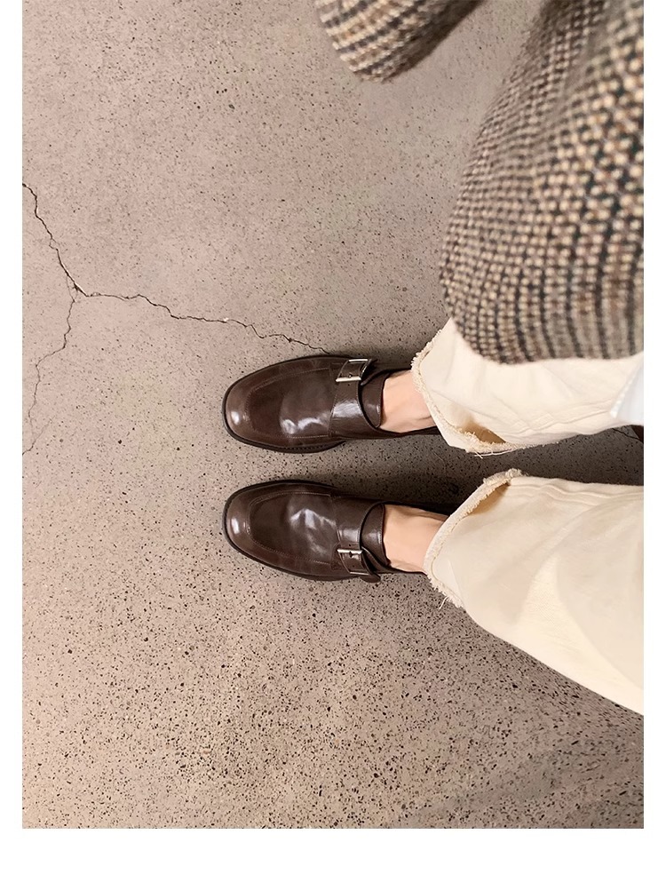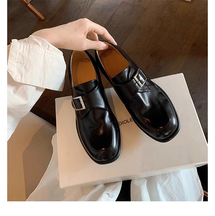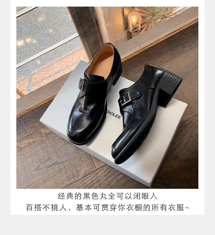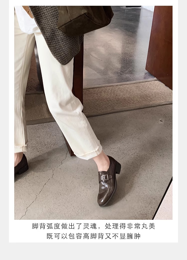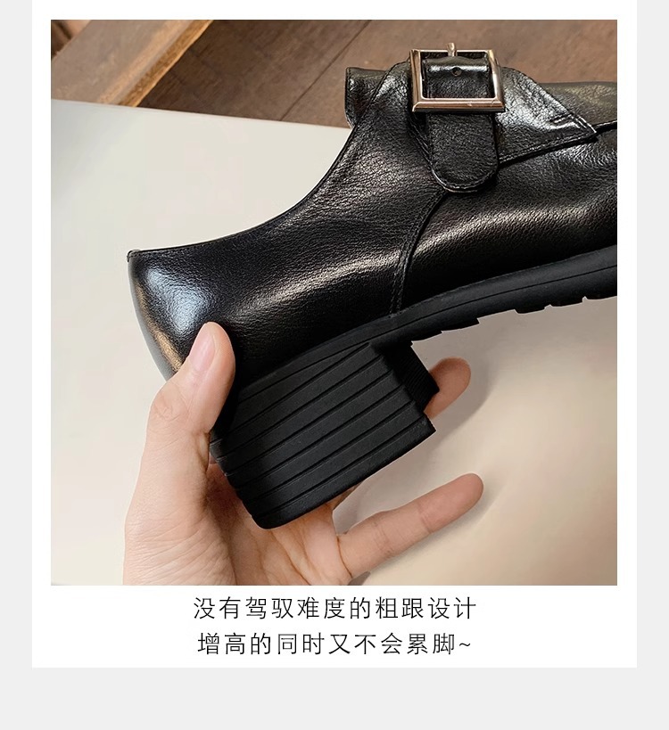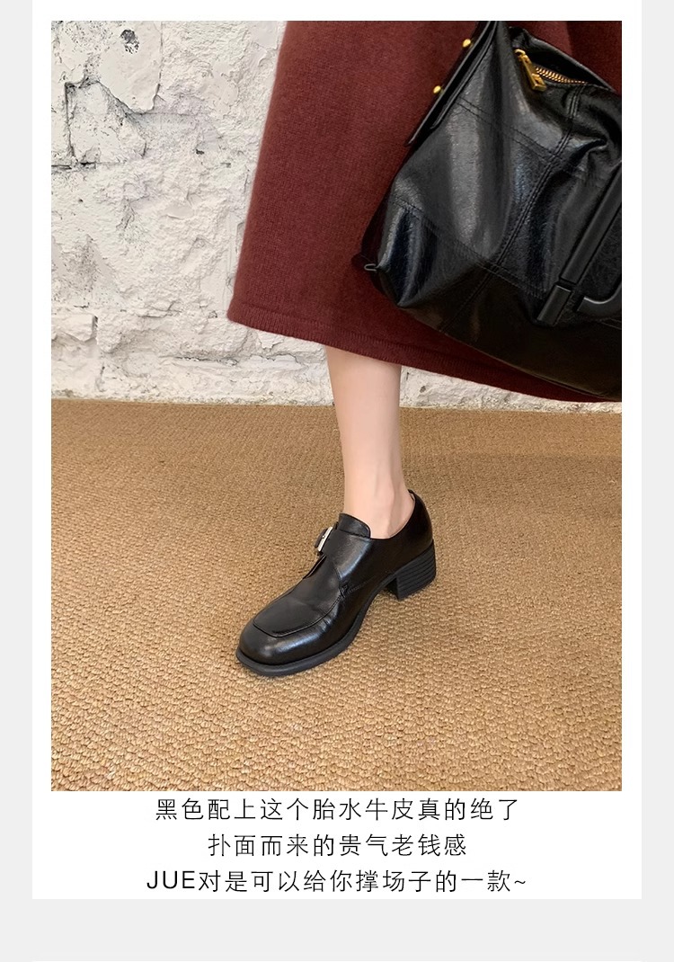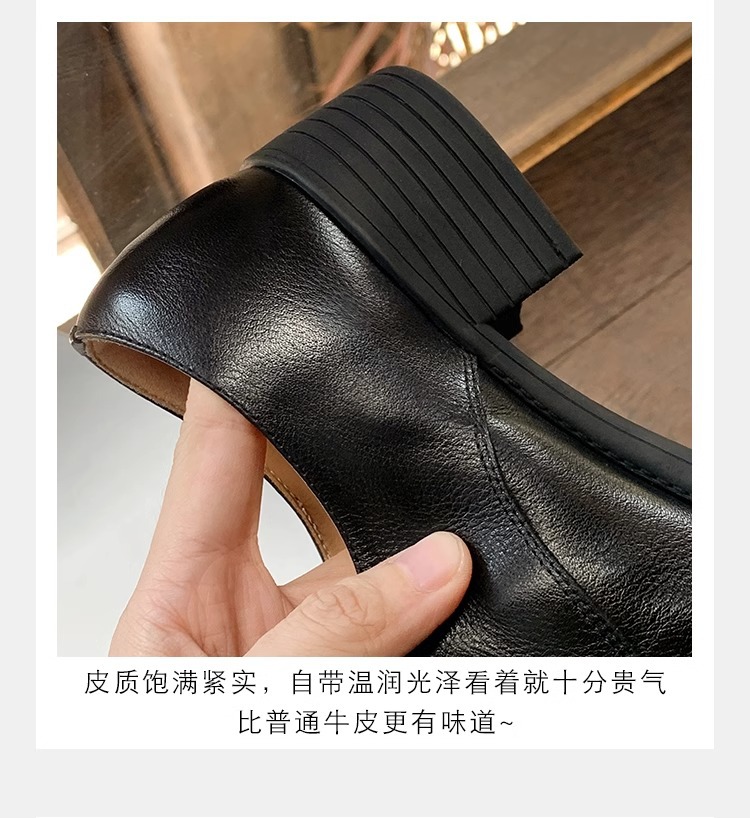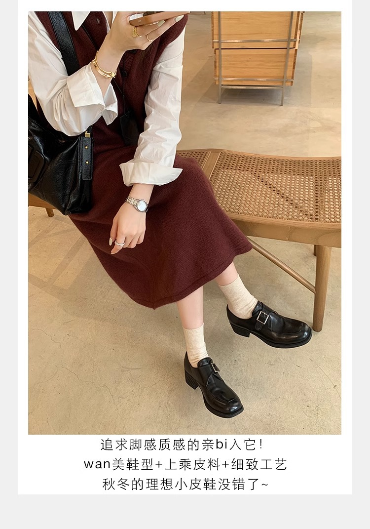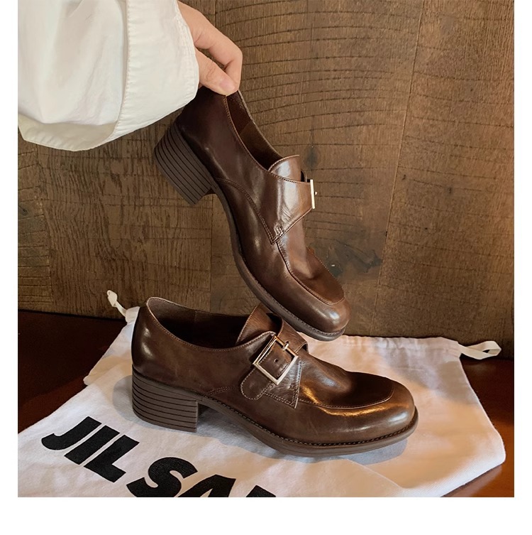 재고 ~ 레트로 영국 하이힐 가죽 신발 여성용 두꺼운 싱글 레이어 신발 슬립 온 로퍼 대학 스타일 JK 여성 신발