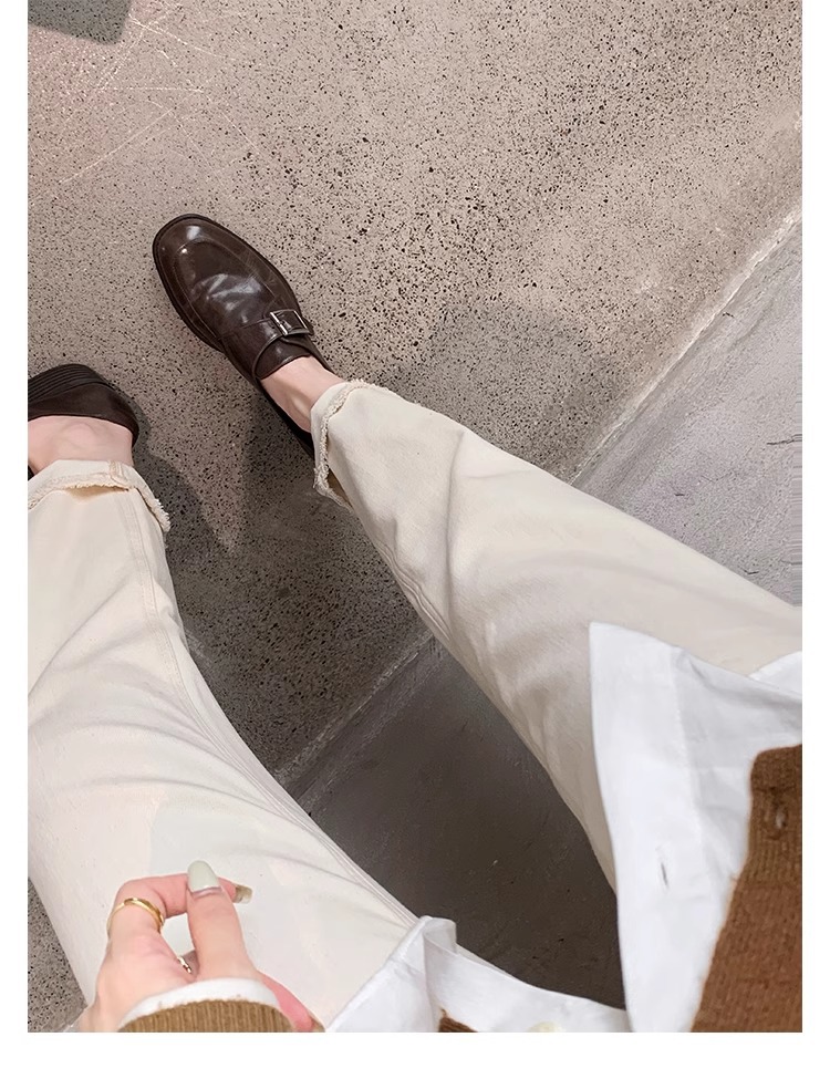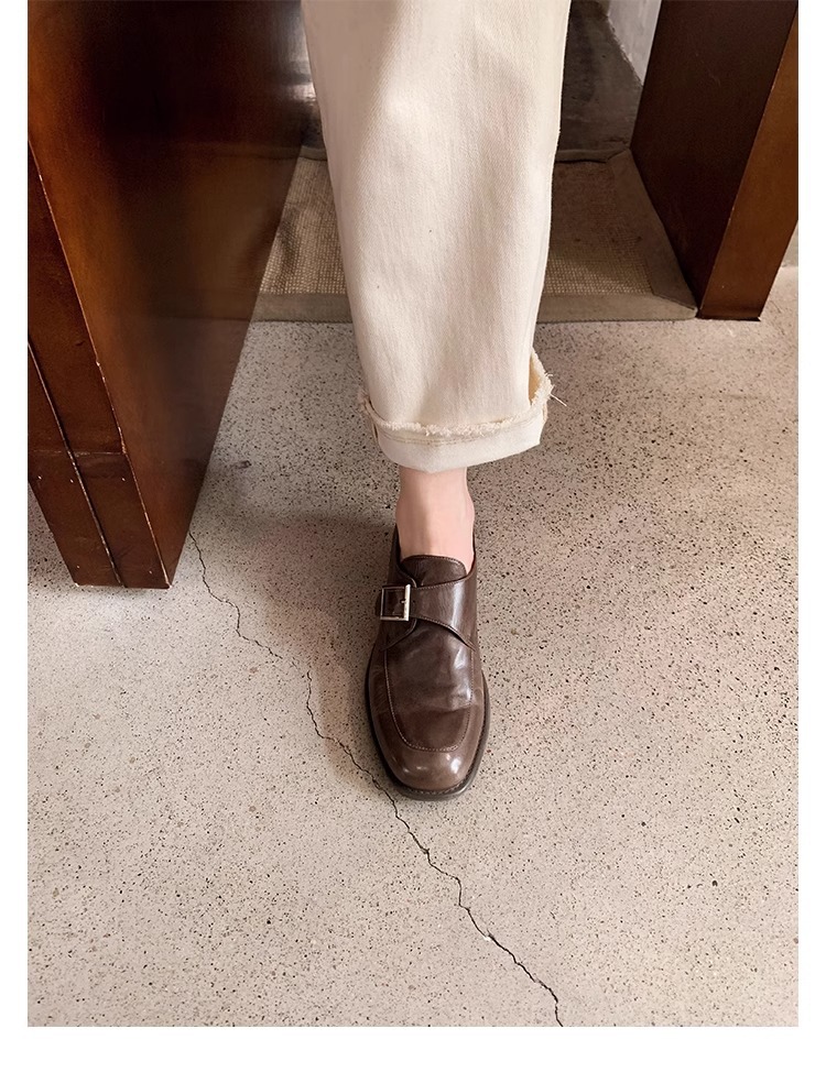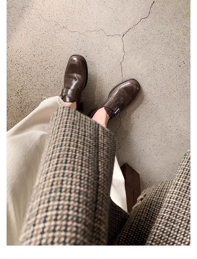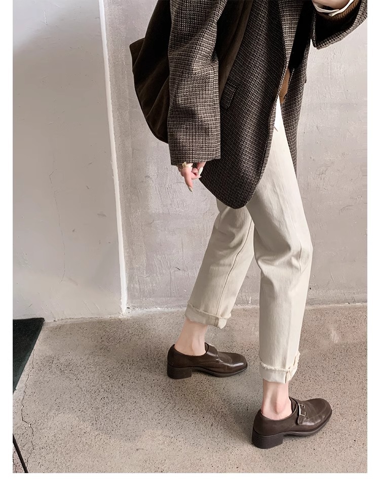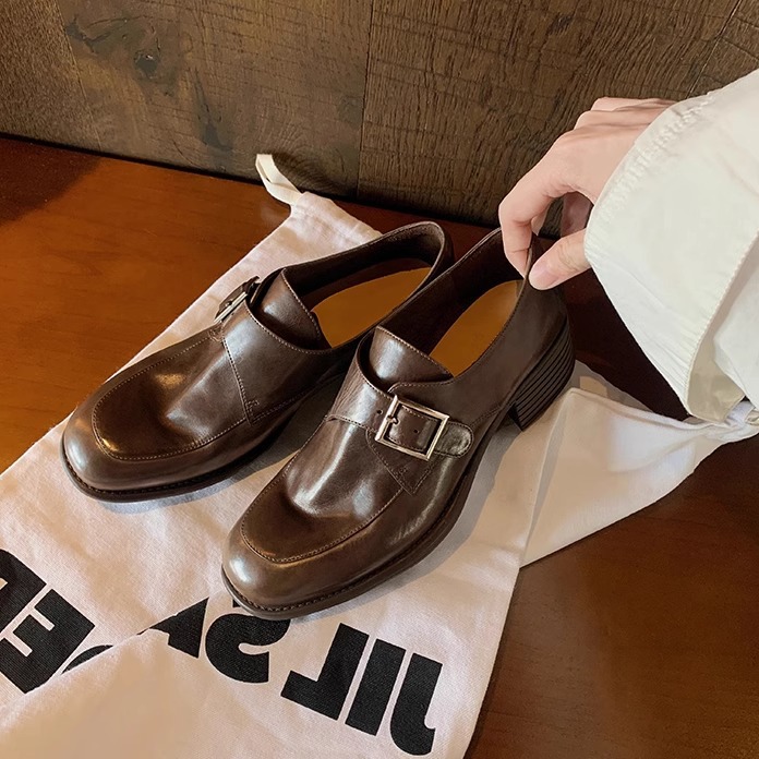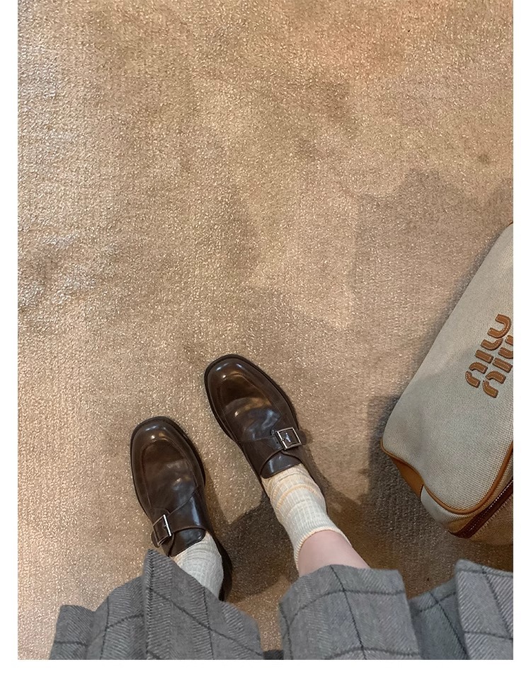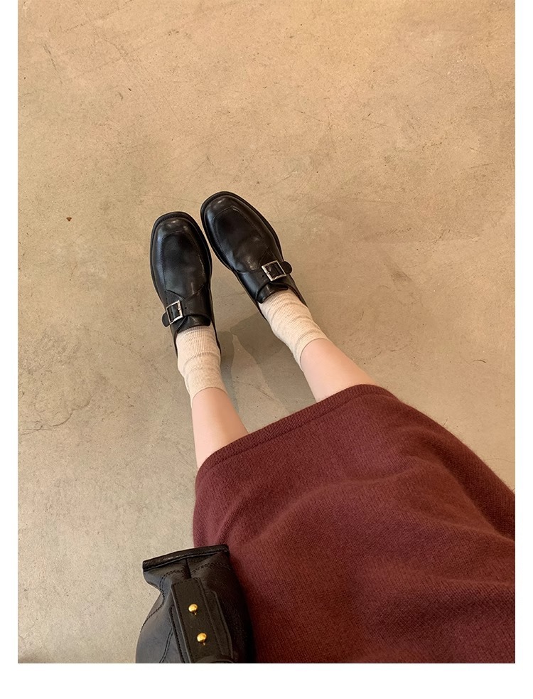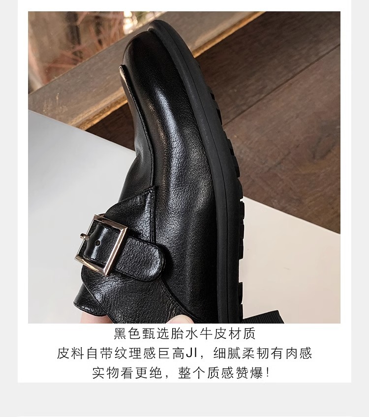 재고 ~ 레트로 영국 하이힐 가죽 신발 여성용 두꺼운 싱글 레이어 신발 슬립 온 로퍼 대학 스타일 JK 여성 신발
