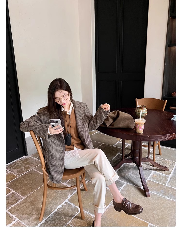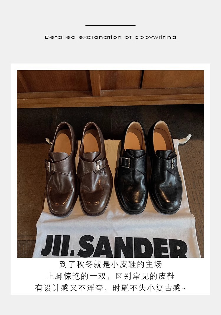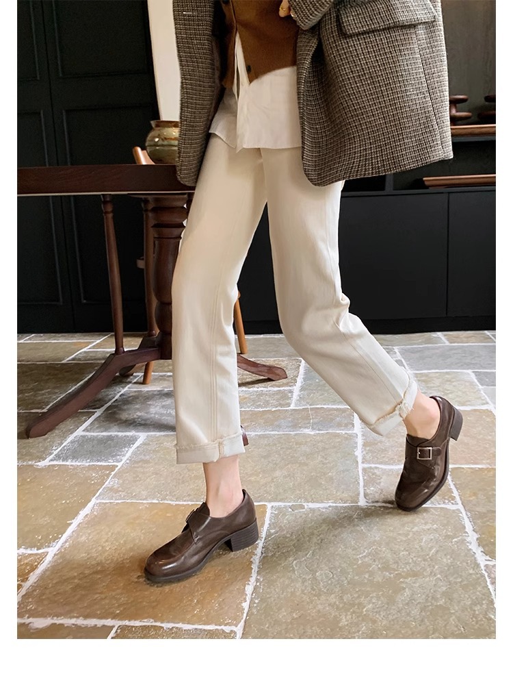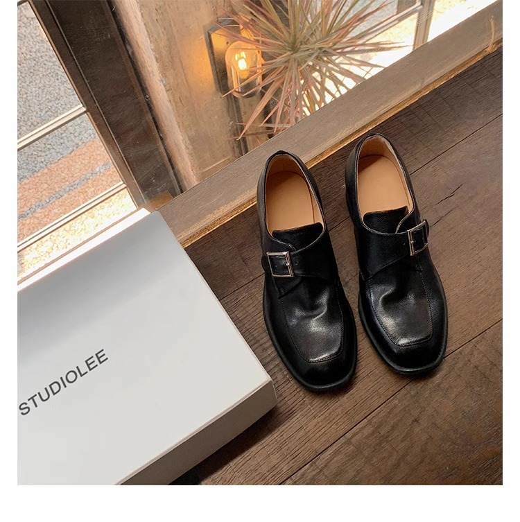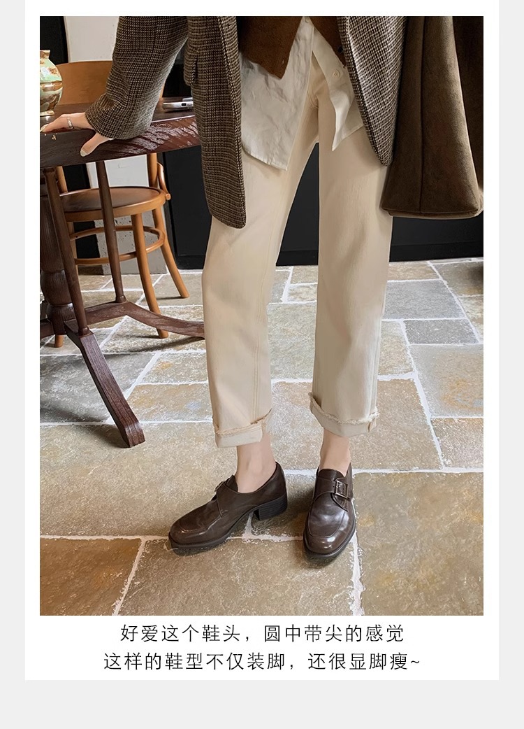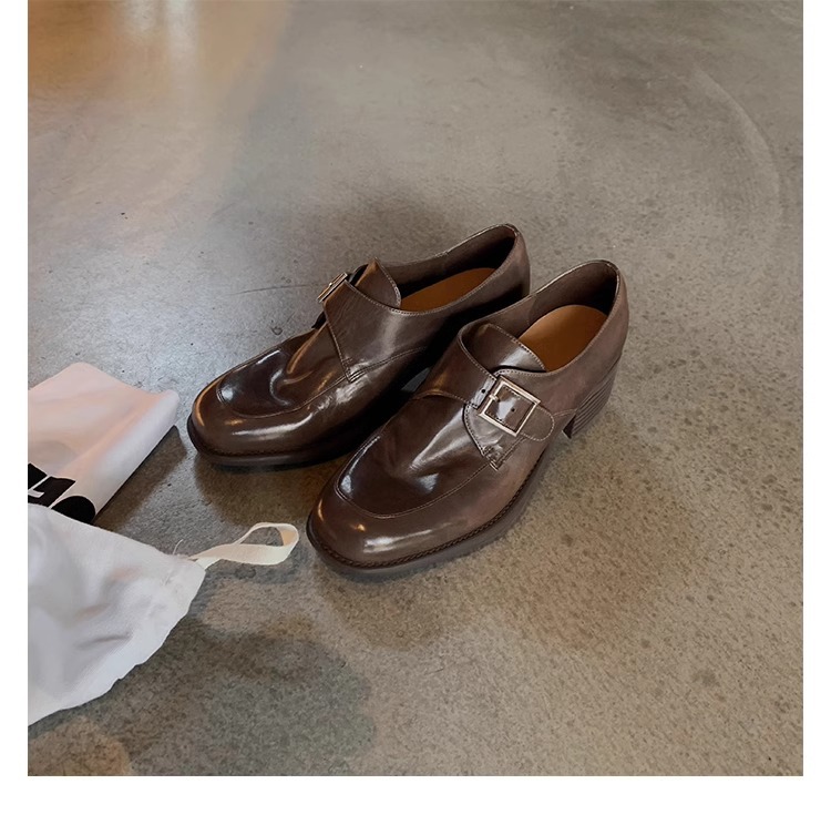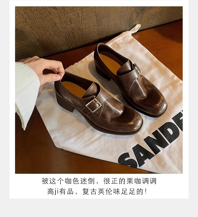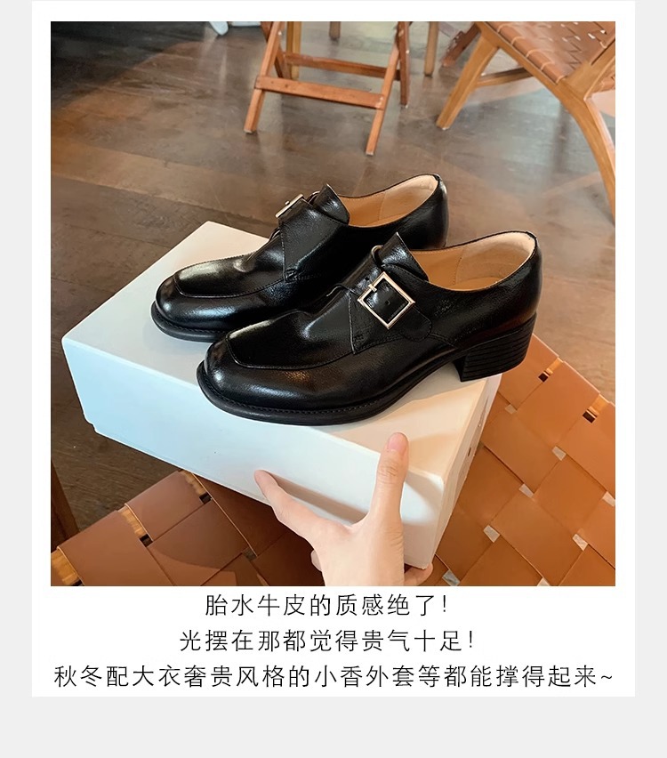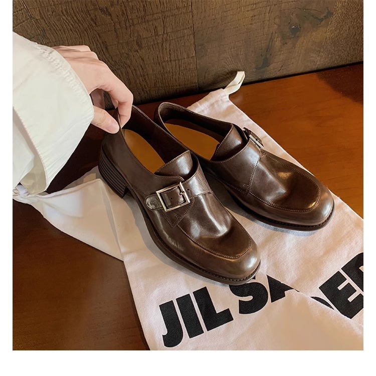 재고 ~ 레트로 영국 하이힐 가죽 신발 여성용 두꺼운 싱글 레이어 신발 슬립 온 로퍼 대학 스타일 JK 여성 신발스토어 가기