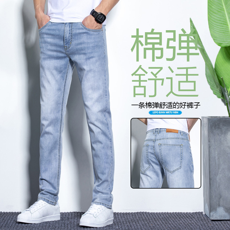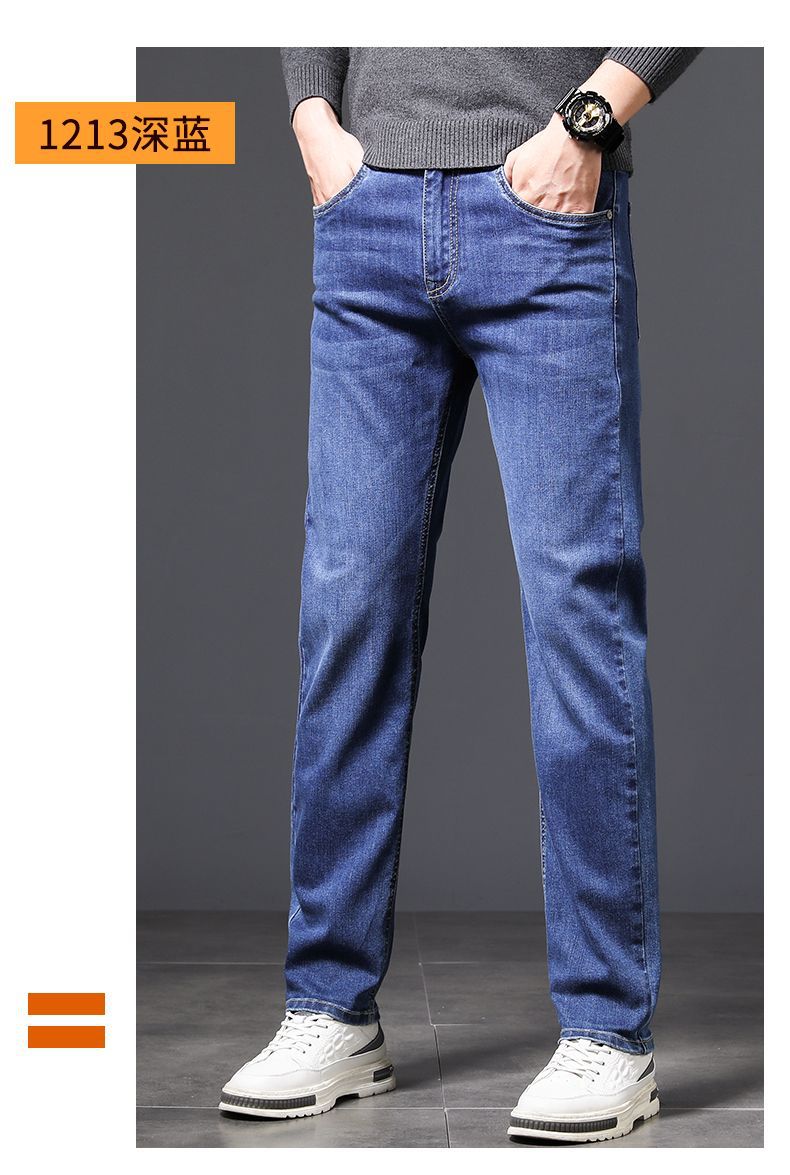 신상품 플리스 블루 진 남성용 가을 겨울 슬림핏 스트레이트 팬츠 신축성 고급 캐주얼 긴바지 남성용스토어 가기