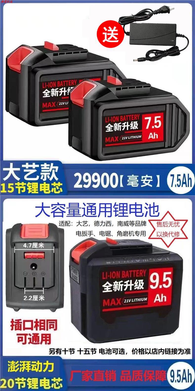 • 9.5A 배터리 20개, 충전기 1개 포함