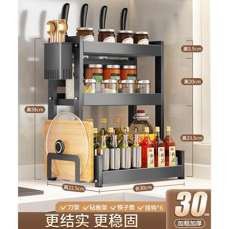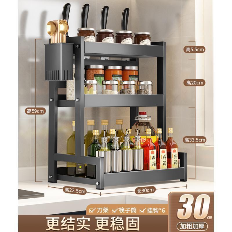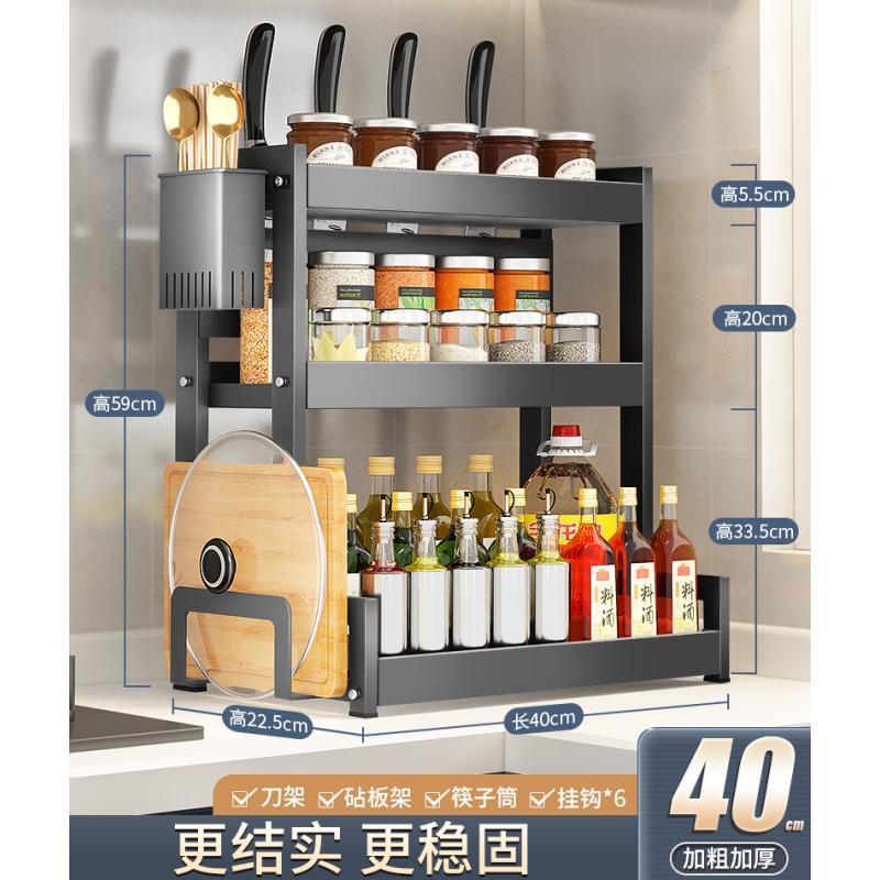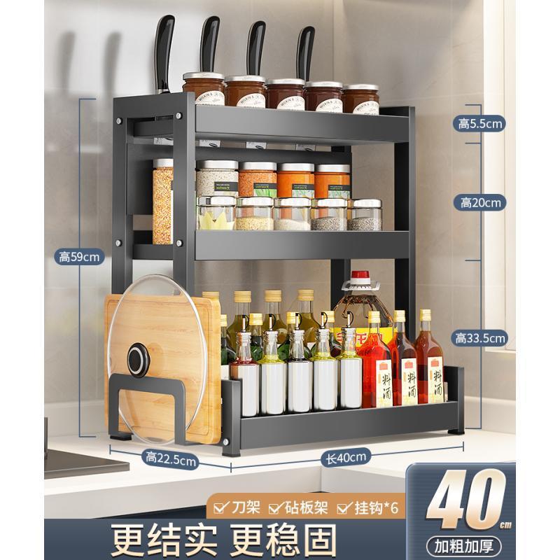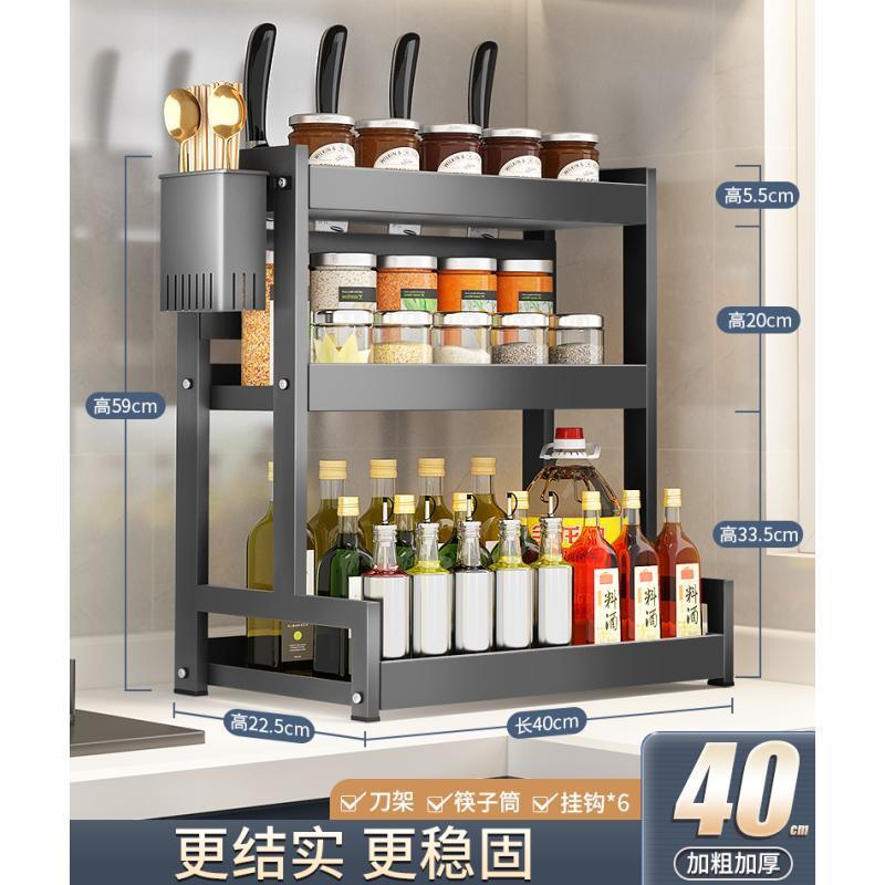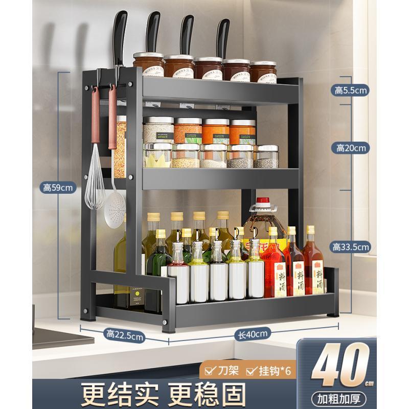 스테인레스 스틸 주방 보관 랙 카운터 탑 나이프 랙 가정용 조미료 다기능 스토리지 랙 블랙 튜닝 랙